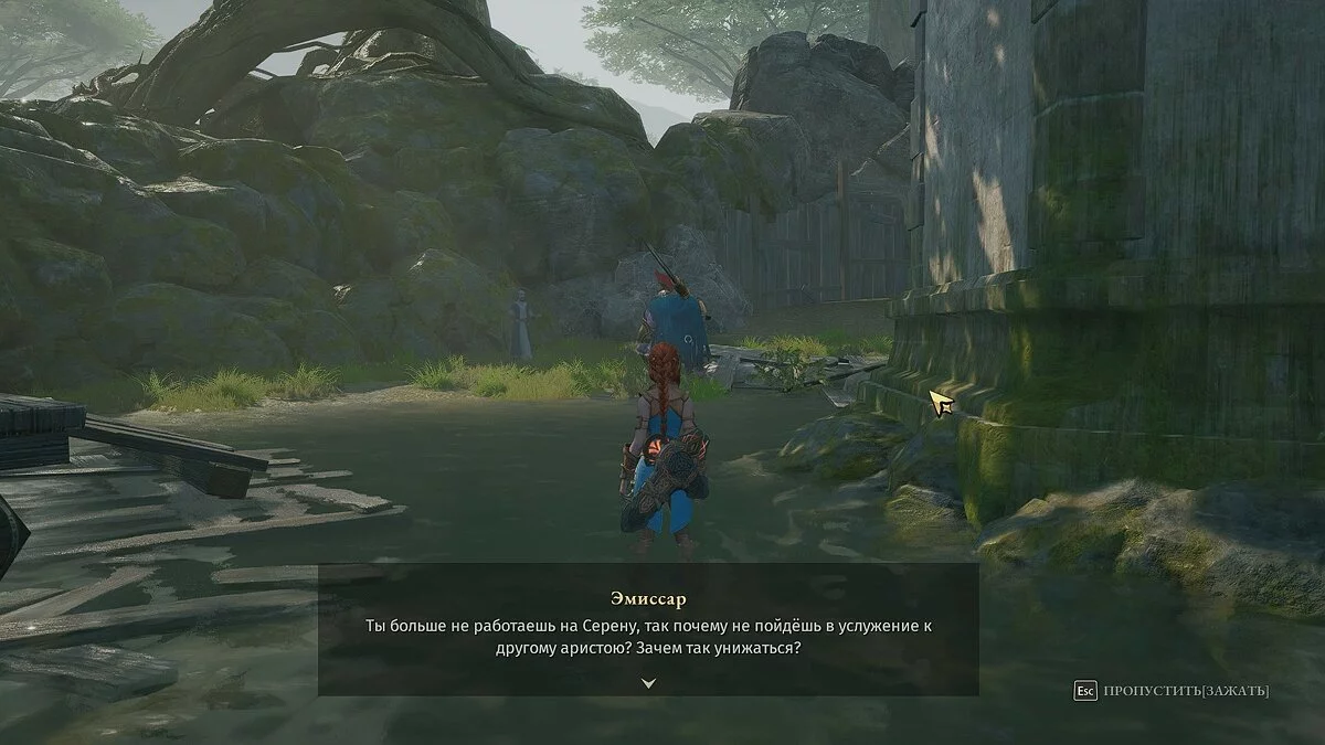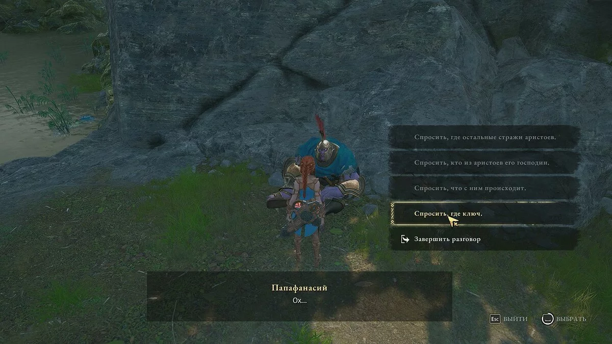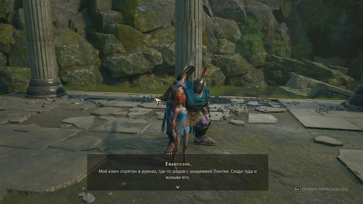 От лагеря охотников следуйте к открытым вратам в Наследие Понтия. Здесь вы встретите Эвменида, псы которого нападут на вас. Отбейтесь от них и побеседуйте с Евангелосом. Мужчина также расскажет, где искать третий ключ.