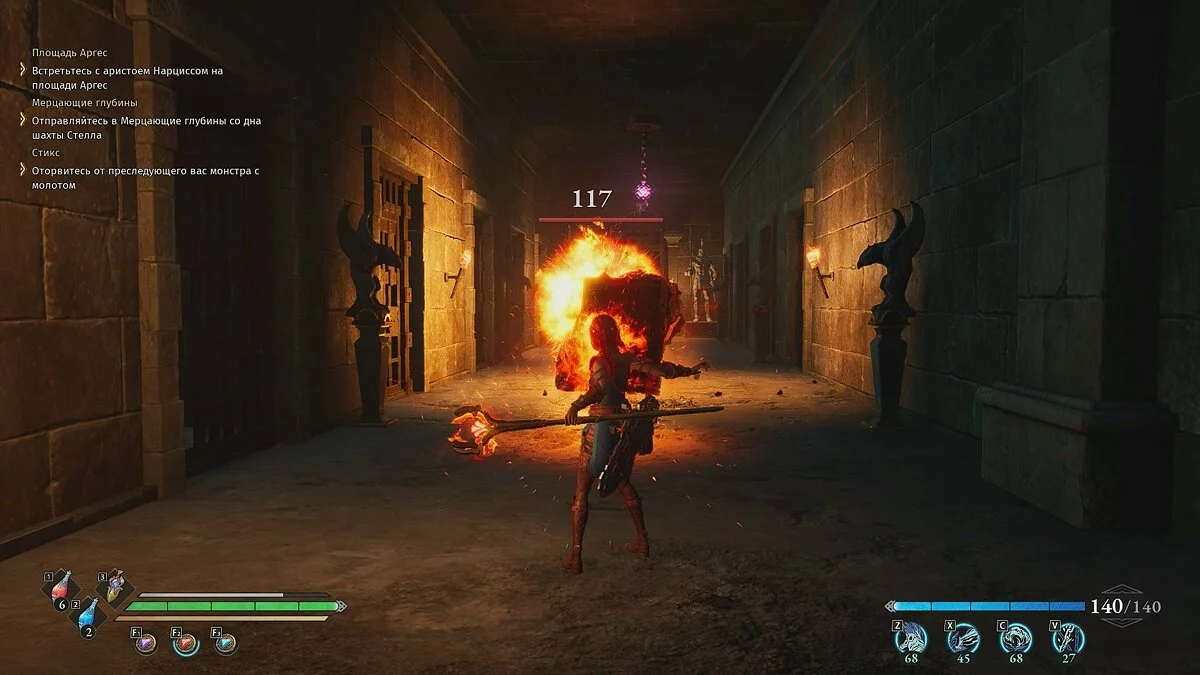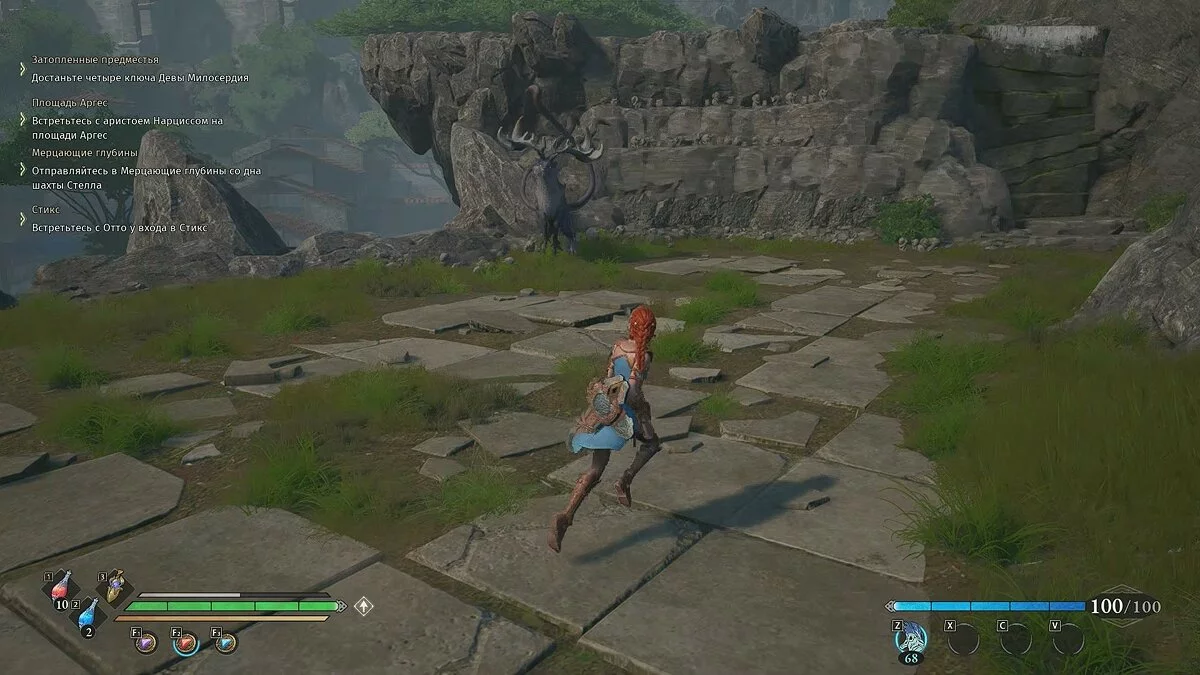 Управление в Asterigos: Curse of the Stars немного отличается от других игр в подобном жанре. Героиня одновременно может носить два типа оружия. Для активации первого типа нажмите ЛКМ, а для второго — ПКМ.