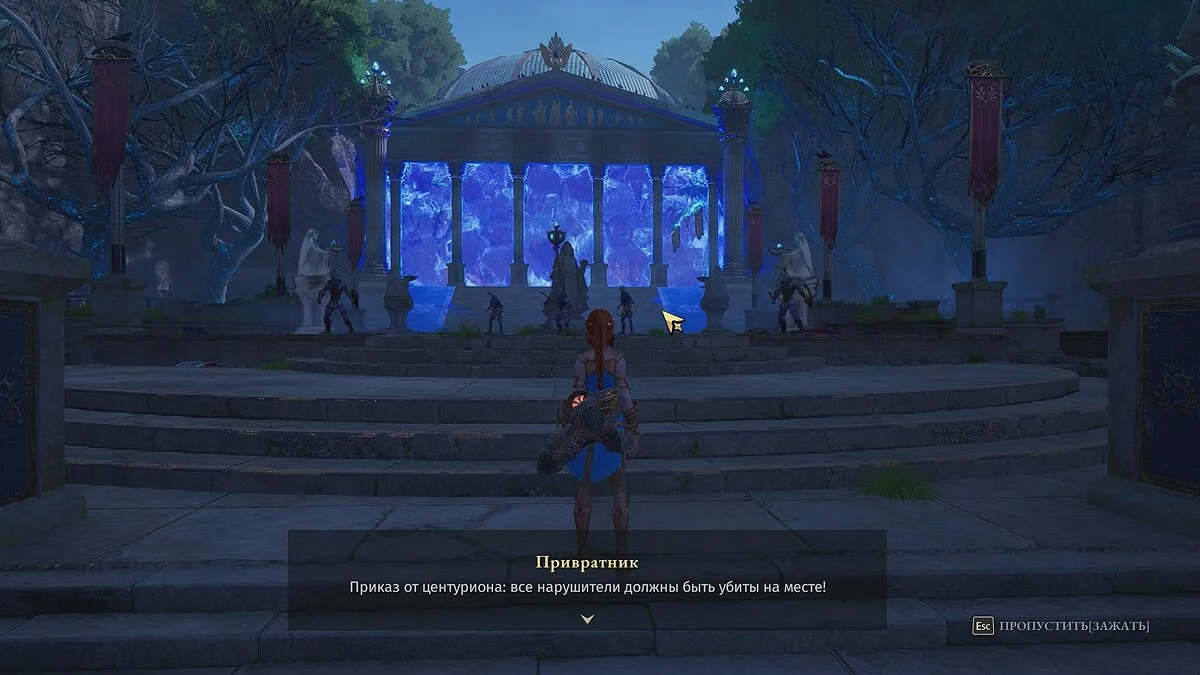Вернитесь ко входу в Храм и сразитесь с Вангелисом. После победы он всё же откажется пропускать вас внутрь. Бегите в лагерь охотников и выполните последний квест Одиссея (нужно встретиться с ним на винокурне и побеседовать с торговцем, который покупает яйца). Подробнее о цепочке квестов Одиссея мы рассказали выше.