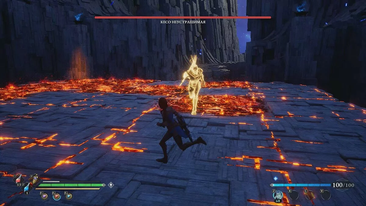 Когда враг попытается атаковать вас вблизи, увернитесь и используйте активный навык (клавиша «Z»). Затем разорвите дистанцию и атакуйте магическим зарядами.