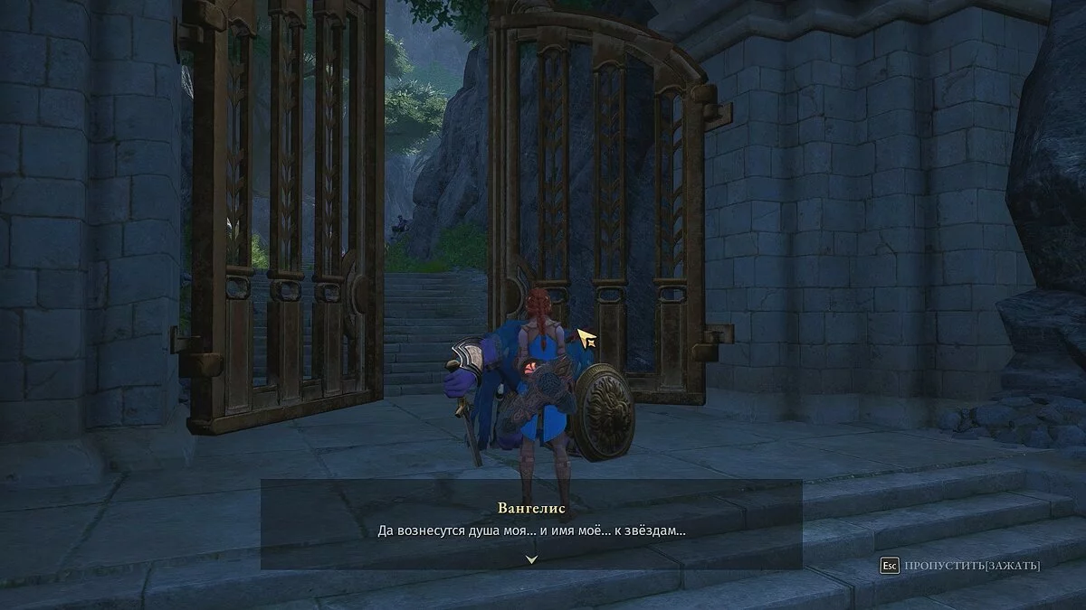 Когда выполните все дополнительные задачи, снова вернитесь к Вангелису. Он будет лежать полумёртвый, а врата позади мужчины будут открыты. Теперь вы сможете попасть к храму и отыскать четвёртый ключ.