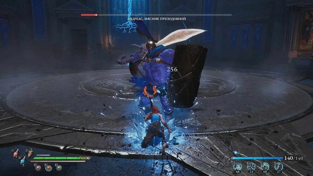 Первые несколько минут прячьтесь за колоннами. Когда Евлалия спустится к вам, рекомендуем использовать только посох и браслеты, так как она может убить героиню несколькими ударами.