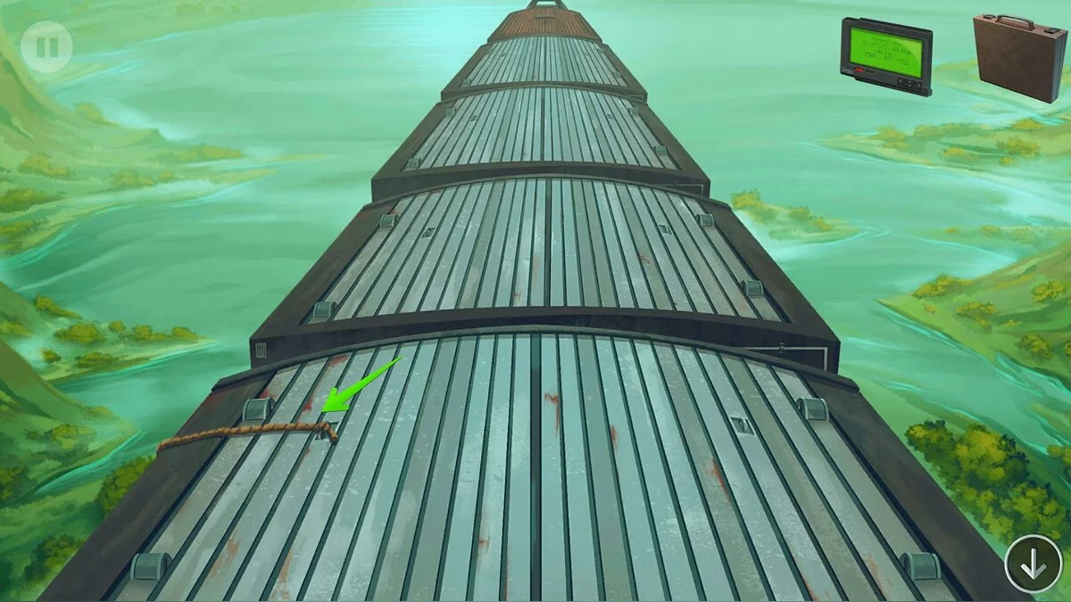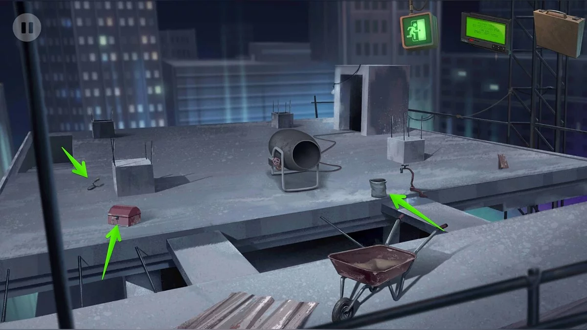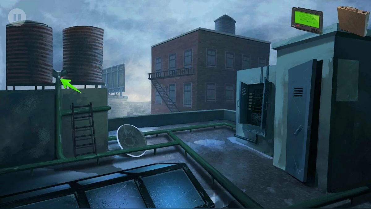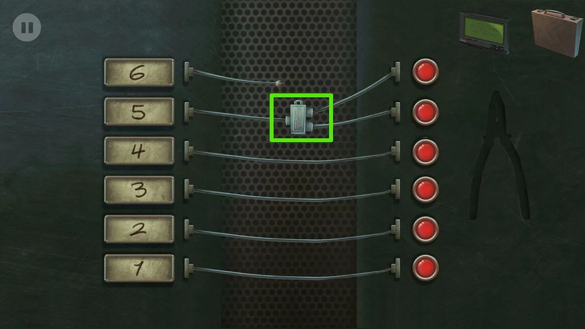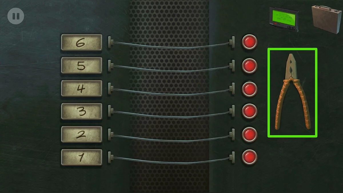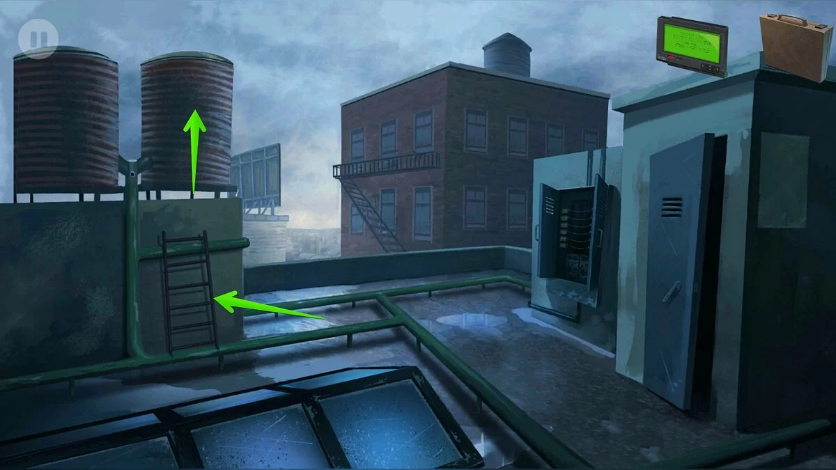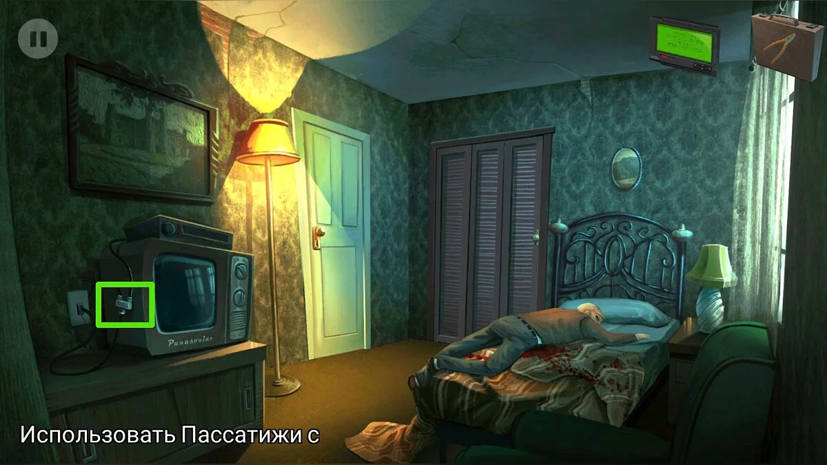 Поднимаемся по лестнице и осматриваем навесной ящик на крыше. Забираем пассатижи, но пока не применяем их на провода. Идём в номер. Используем пассатижи на телевизоре и получаем сплиттер. Возвращаемся на крышу, используем сплиттер на кабель «5».
