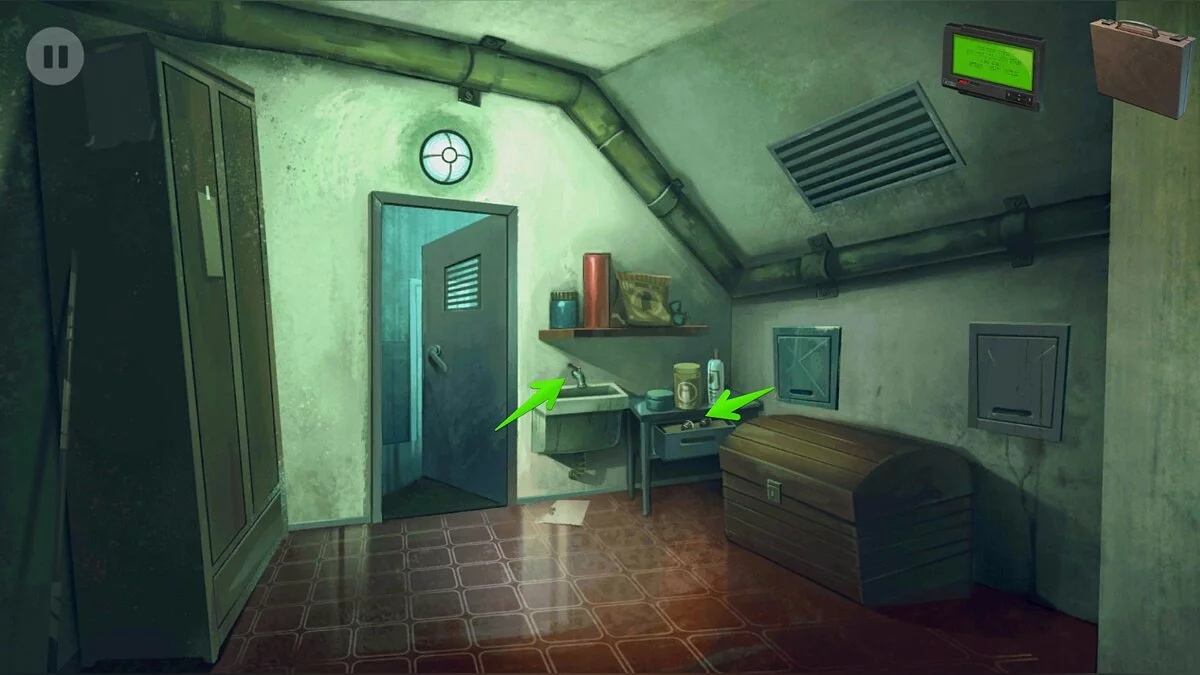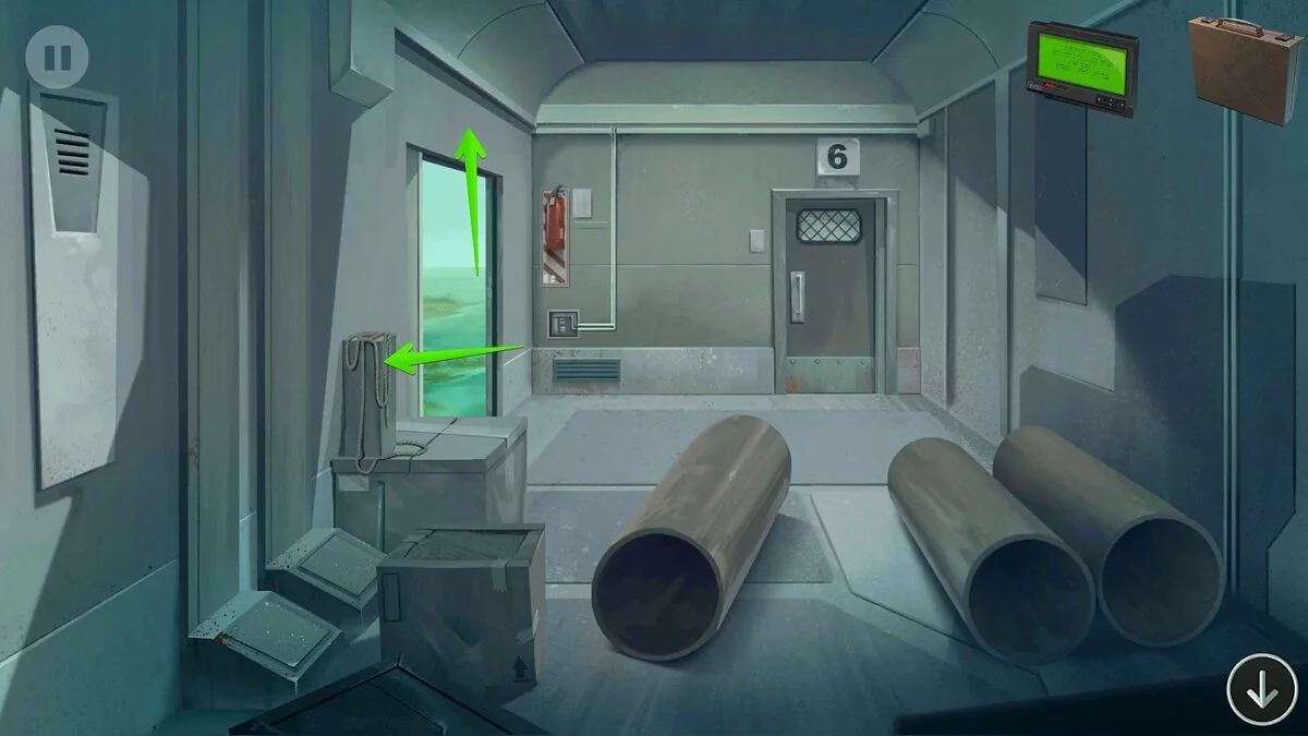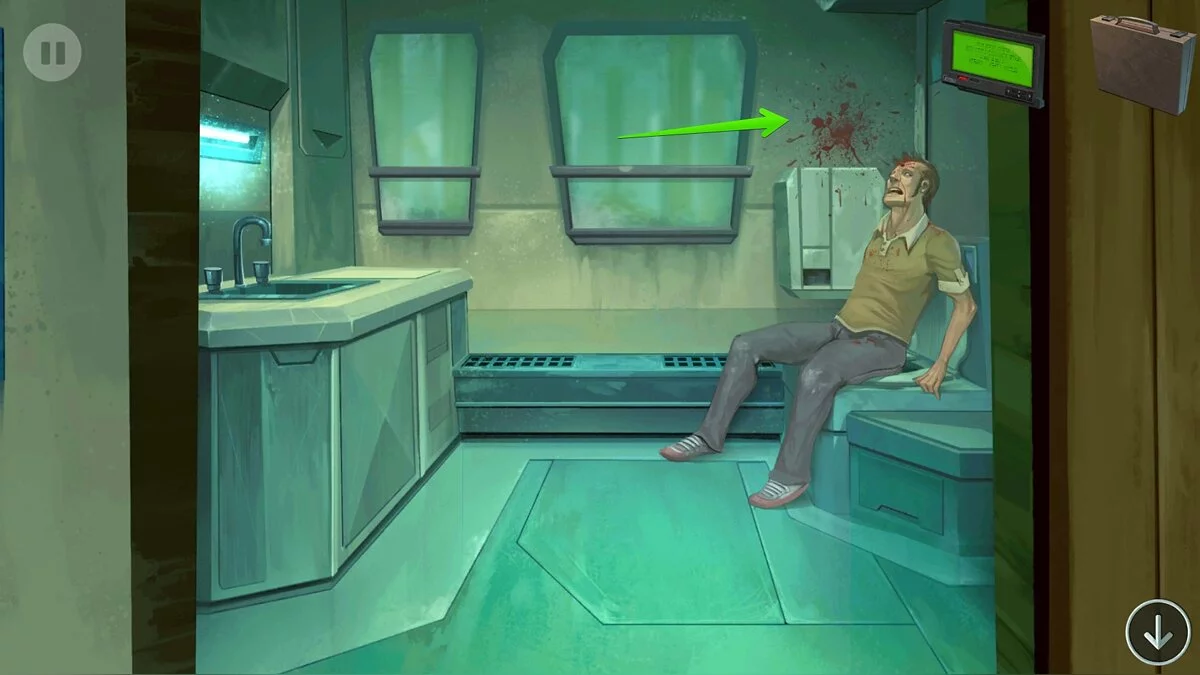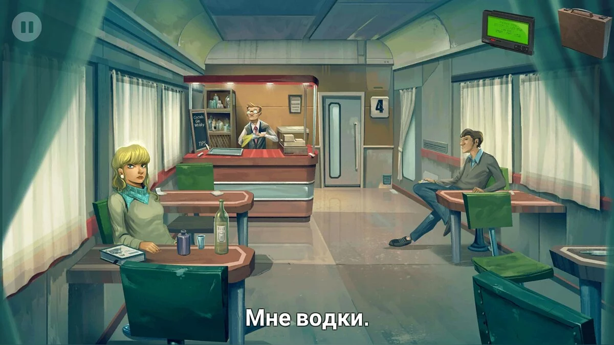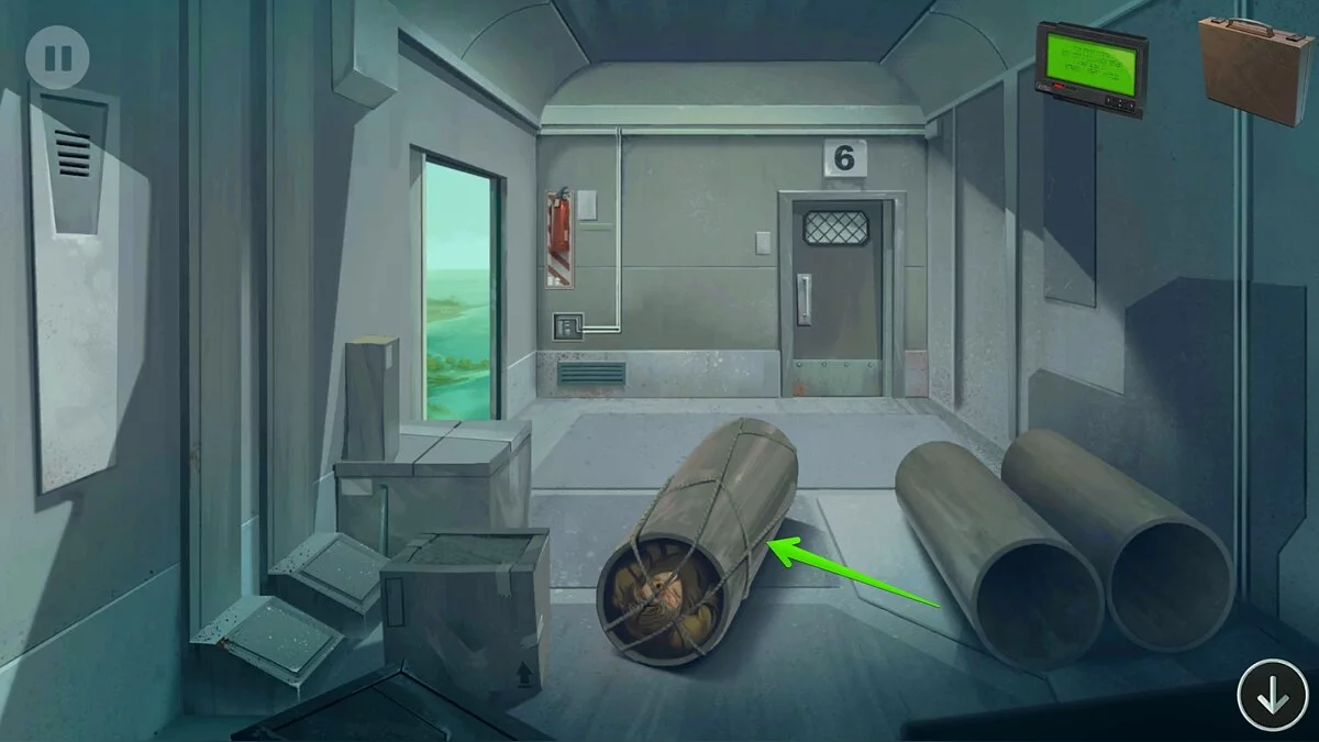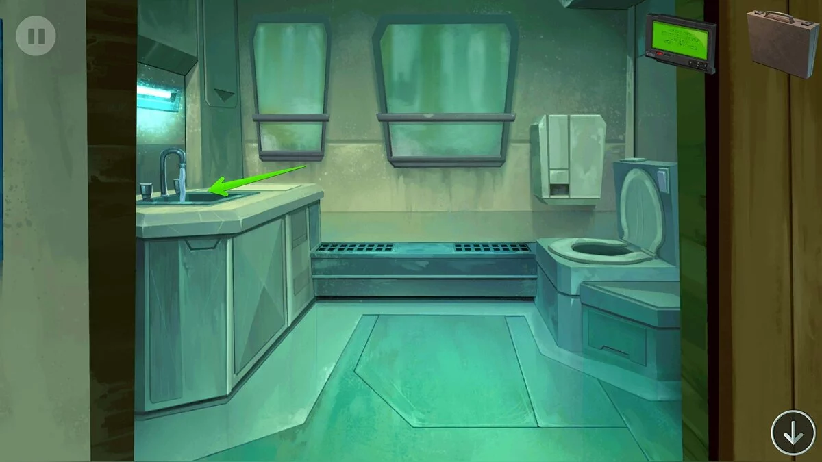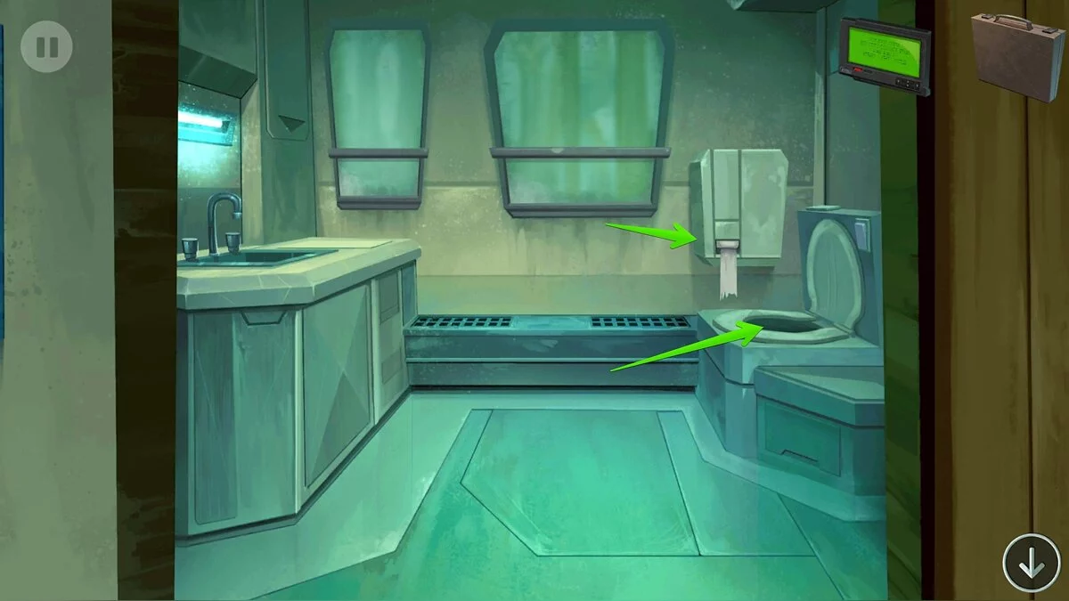 Пройдите в третий вагон. Дальняя дверь слева — офис. Сообщите о том, что женский туалет заливает. Бегите во второй вагон. Возьмите со стола кепку, из рюкзака таблетки и деньги. В выдвижном ящике заберите чемодан. Закройте ящик.