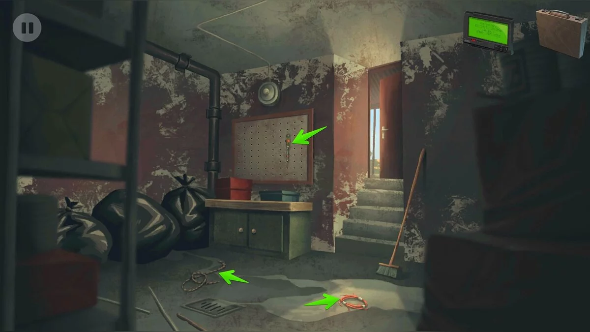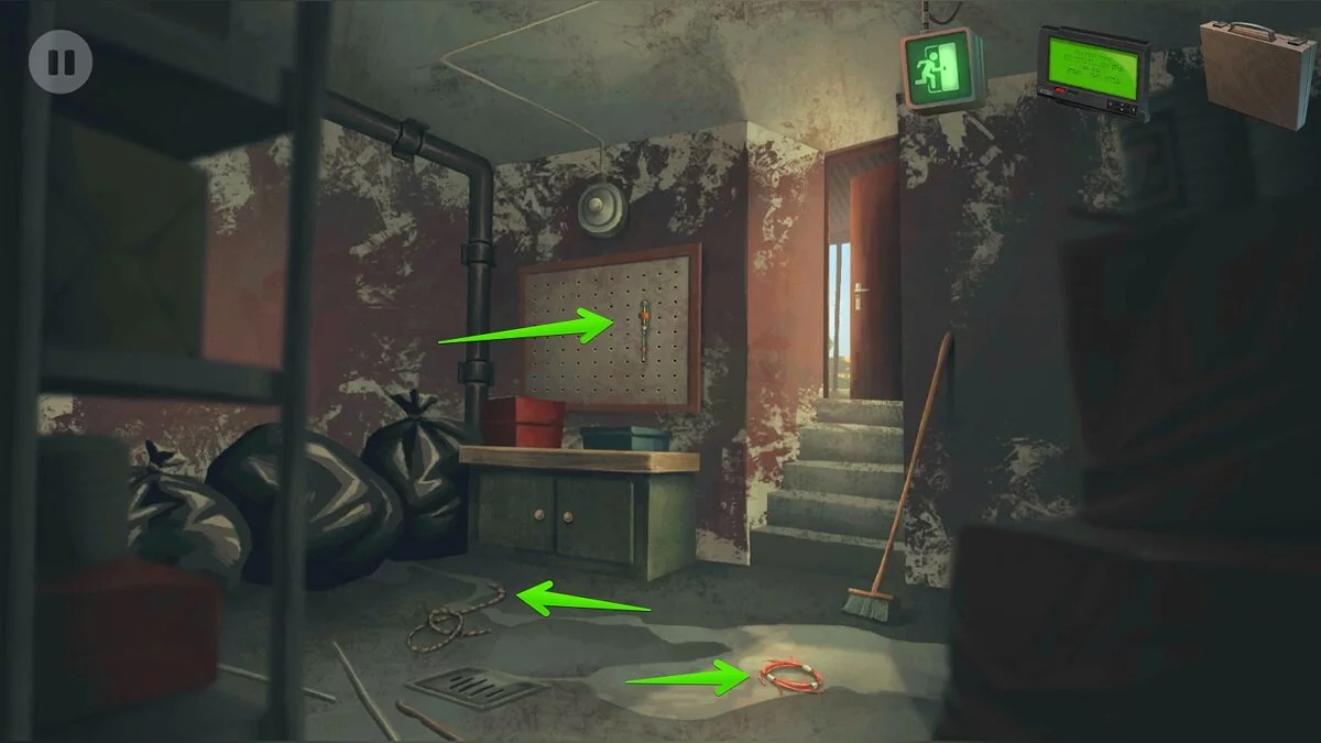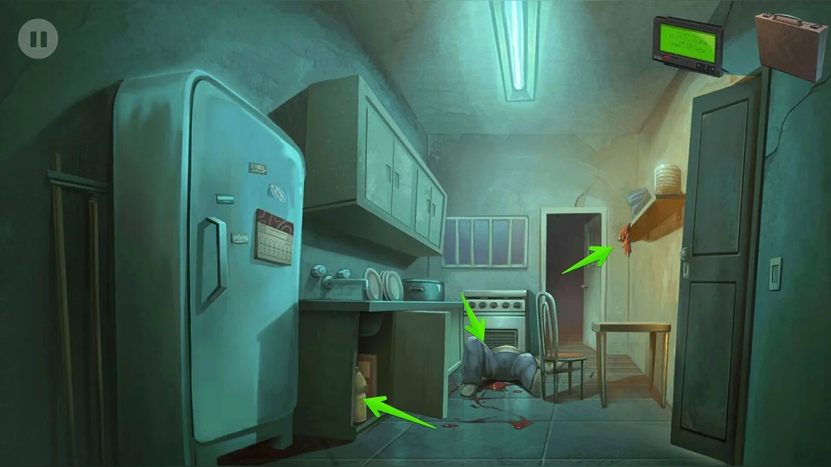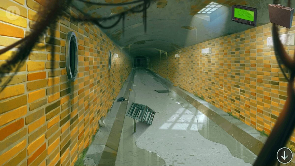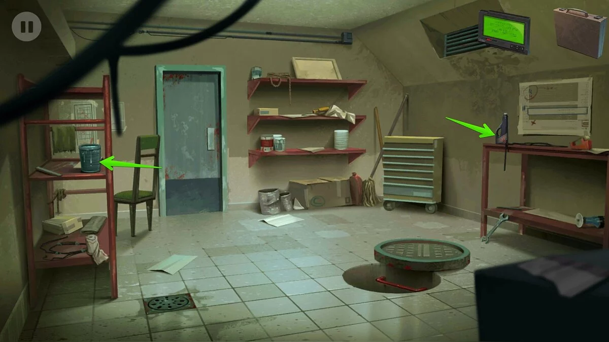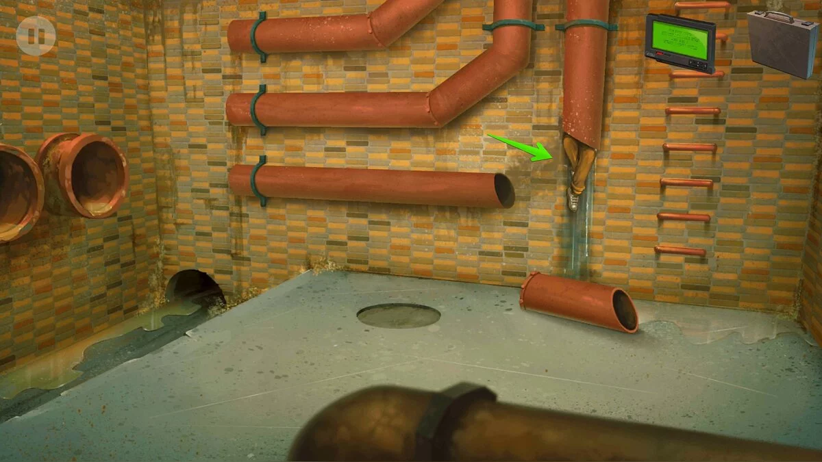 Спускаемся вниз. Из ближайшей трубы видим краску — применяем гаечный ключ и получаем тело жертвы. Снова используем ключ, чтобы соединить трубы.