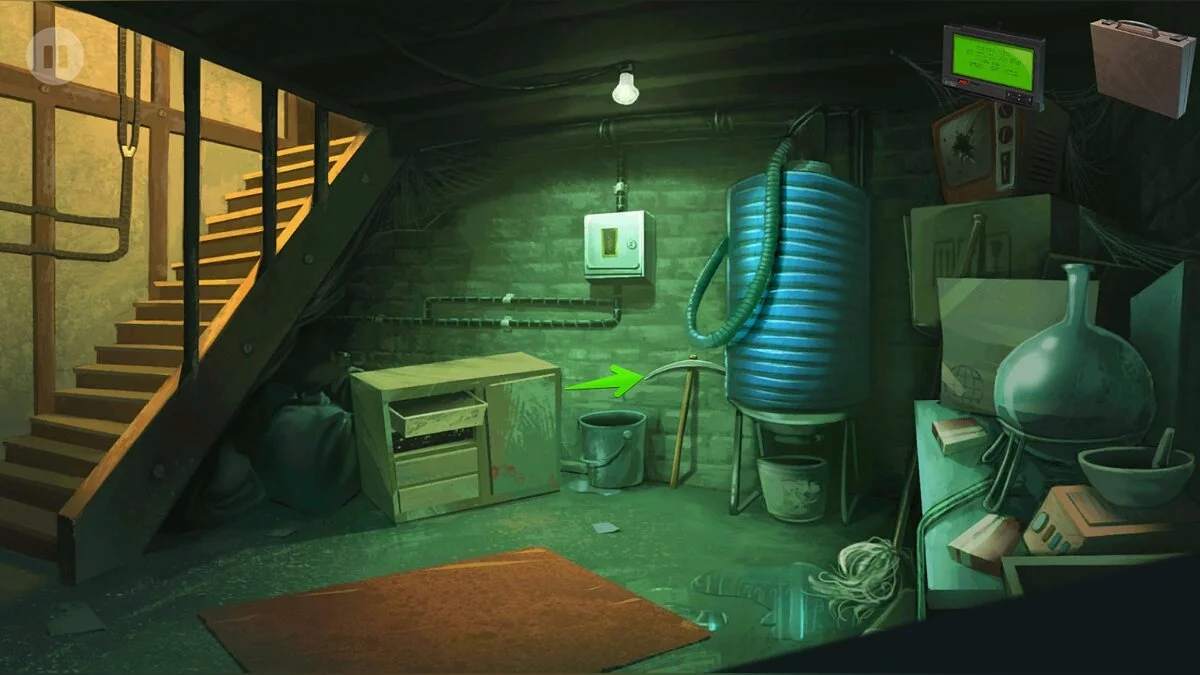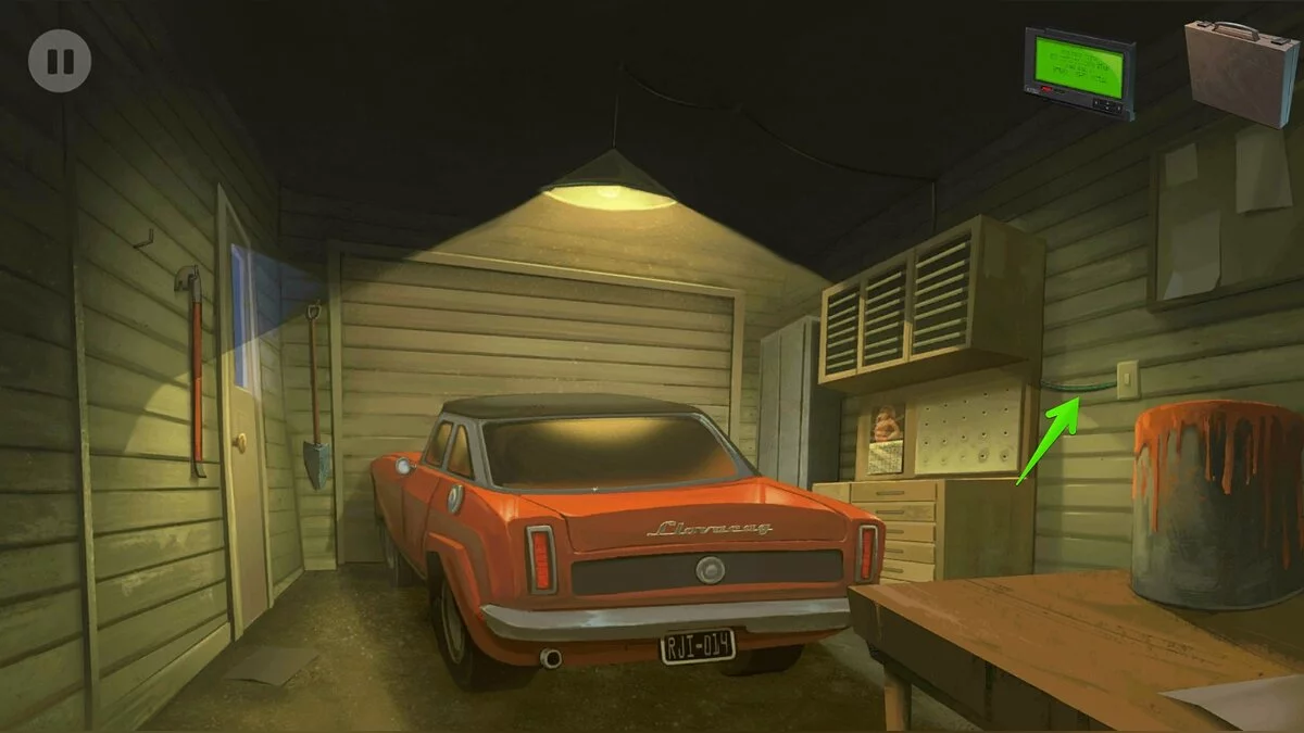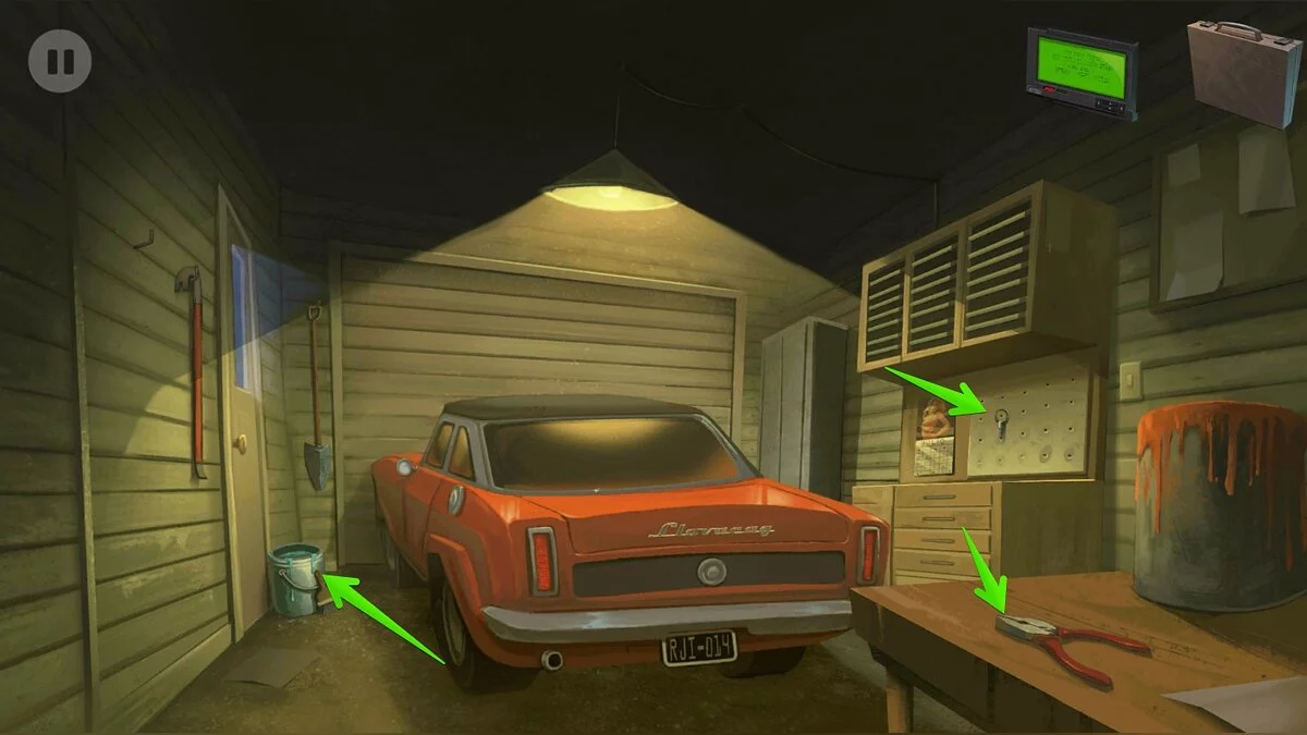 В сейфе найдём ключи. Ими можно открыть дверь на кухне. Заходим в гараж, забираем пассатижи, краску и ключ. Отодвигаем стеллаж с инструментами и видим кабель, идущий от выключателя. Применяем пассатижи на провод, получаем его в инвентарь.