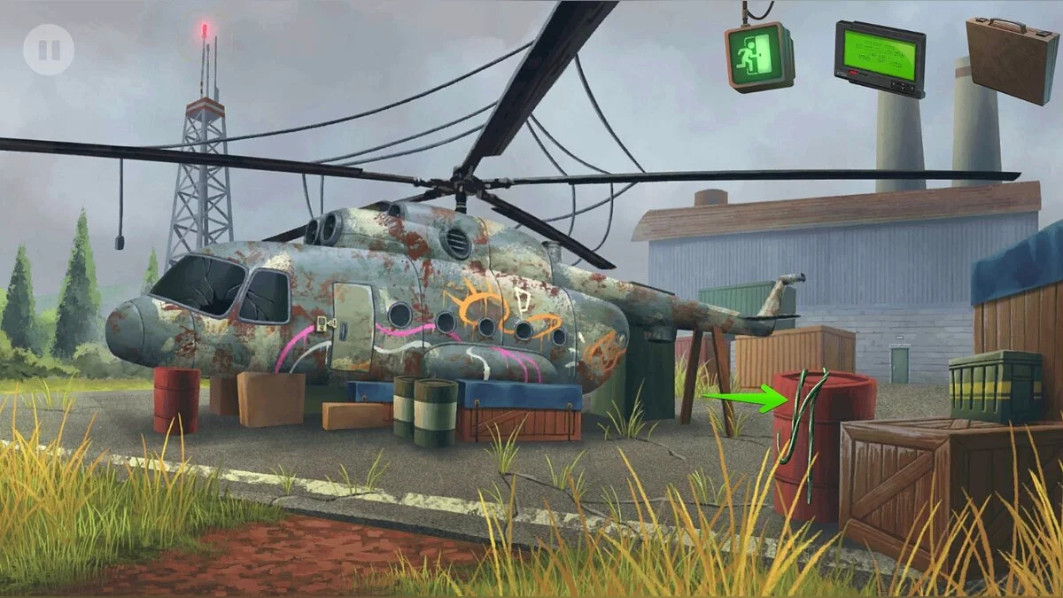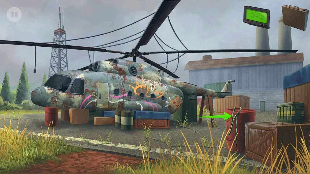Добираемся до базы, сразу же берём шланг на бочке красного цвета и открываем дверь в вертолет МИ-26. Для этого придется сыграть в мини-игру. Обращаем внимание, что для решения головоломки доступно всего 99 ходов. После этого вертолет взорвется.