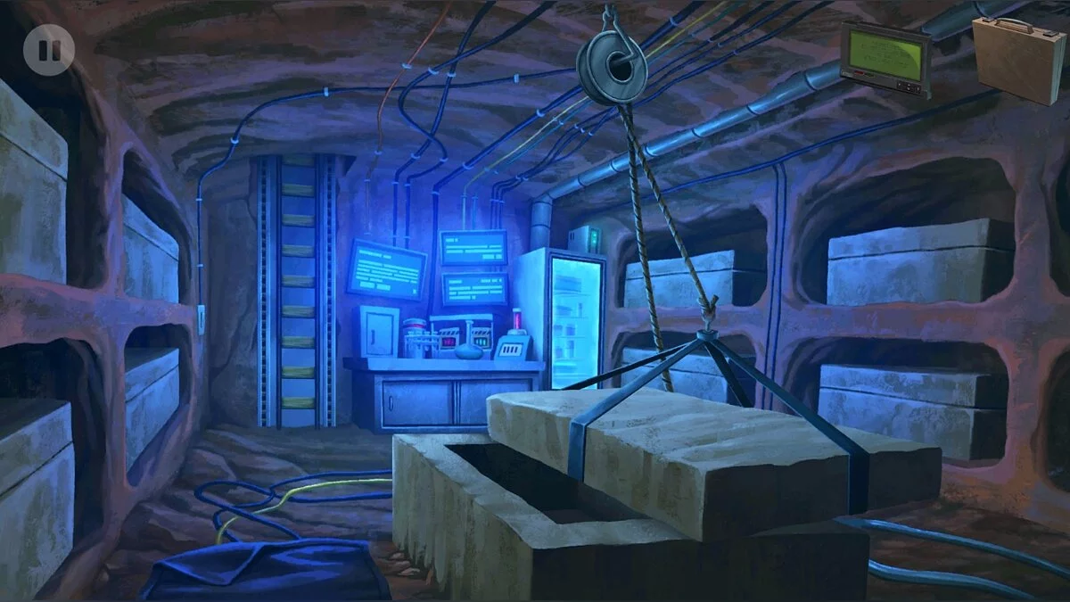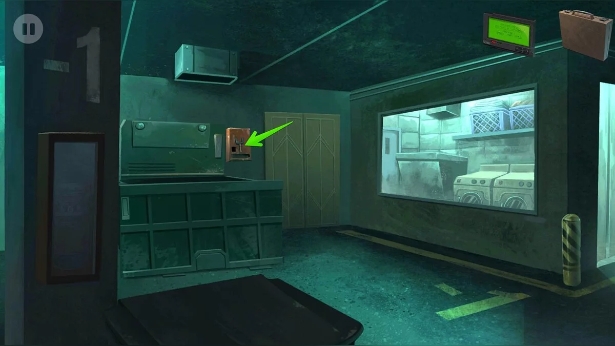 Возвращаемся в центральный зал, идём влево. Применяем зуб на щитке рядом с дверью, выключаем тумблер «B1». Свет в зале погаснет, забираем пропуск у охранника. С его помощью открываем центральную дверь и возвращаем карту.