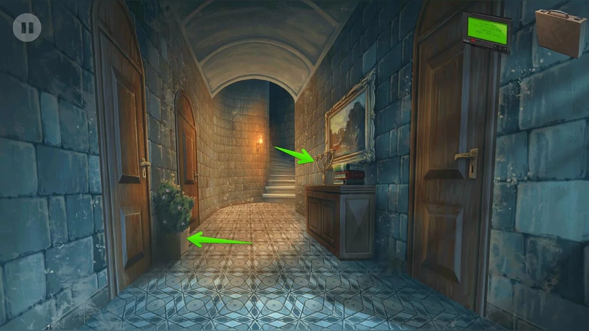 Придётся решить небольшую головоломку. Делаем это и забираем главный ключ. Выходим в коридор, справа подбираем канделябр и горшок. Главным ключом открываем дальнюю дверь слева.