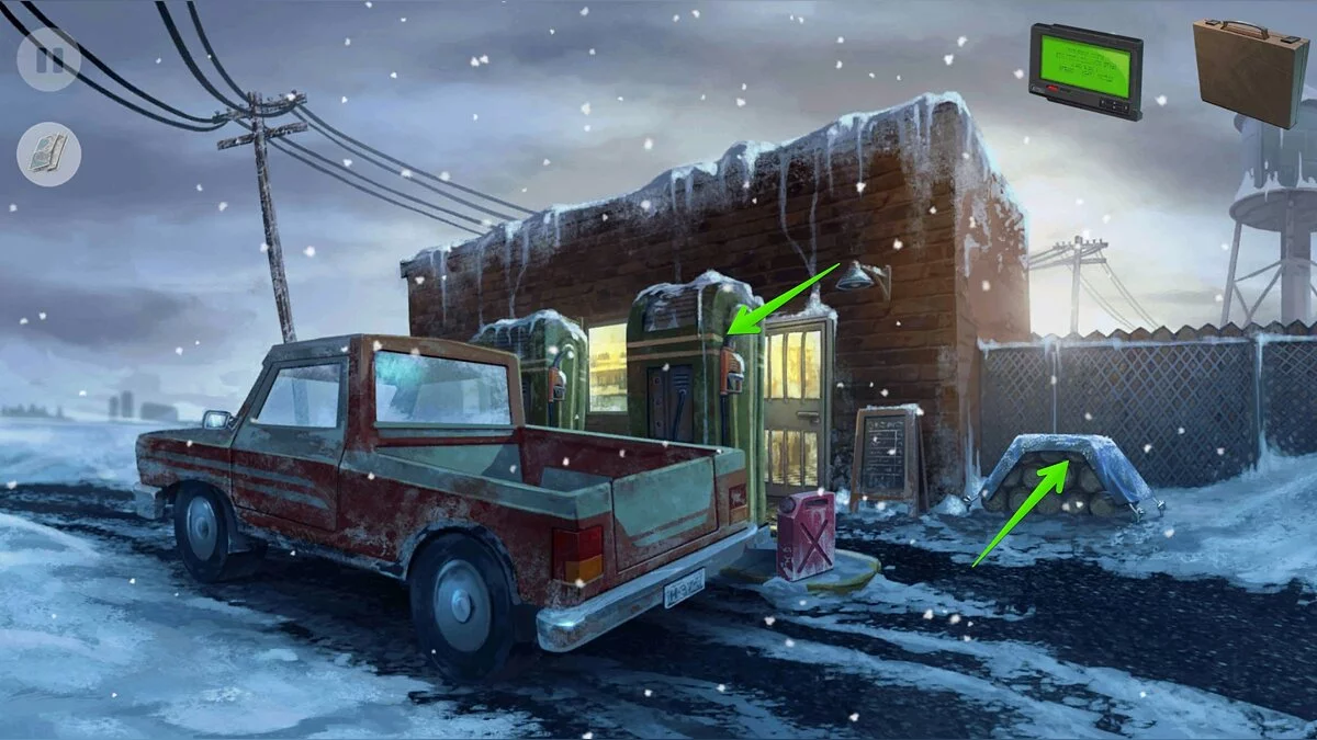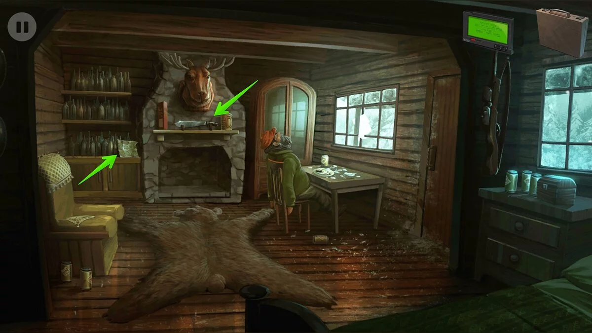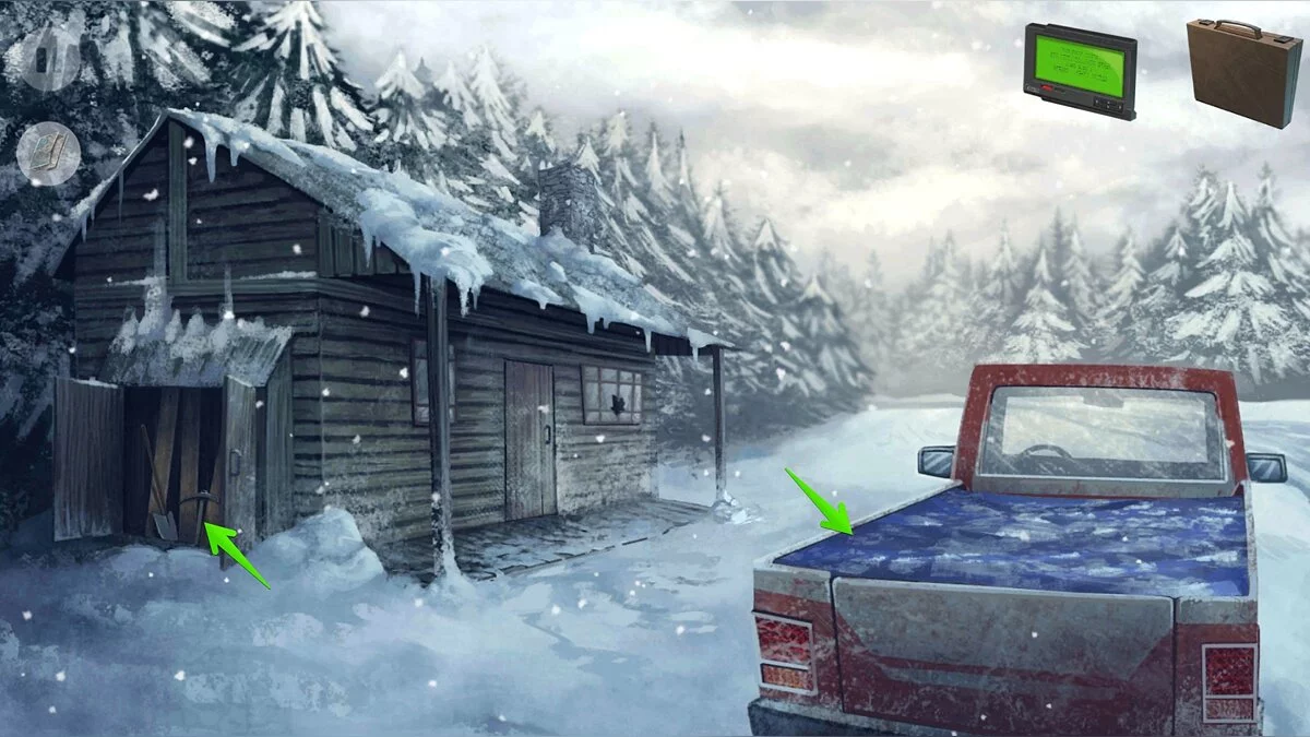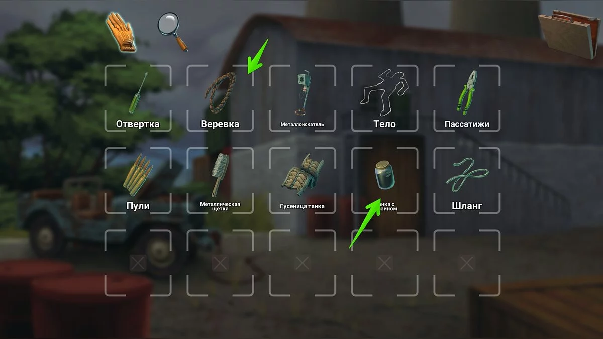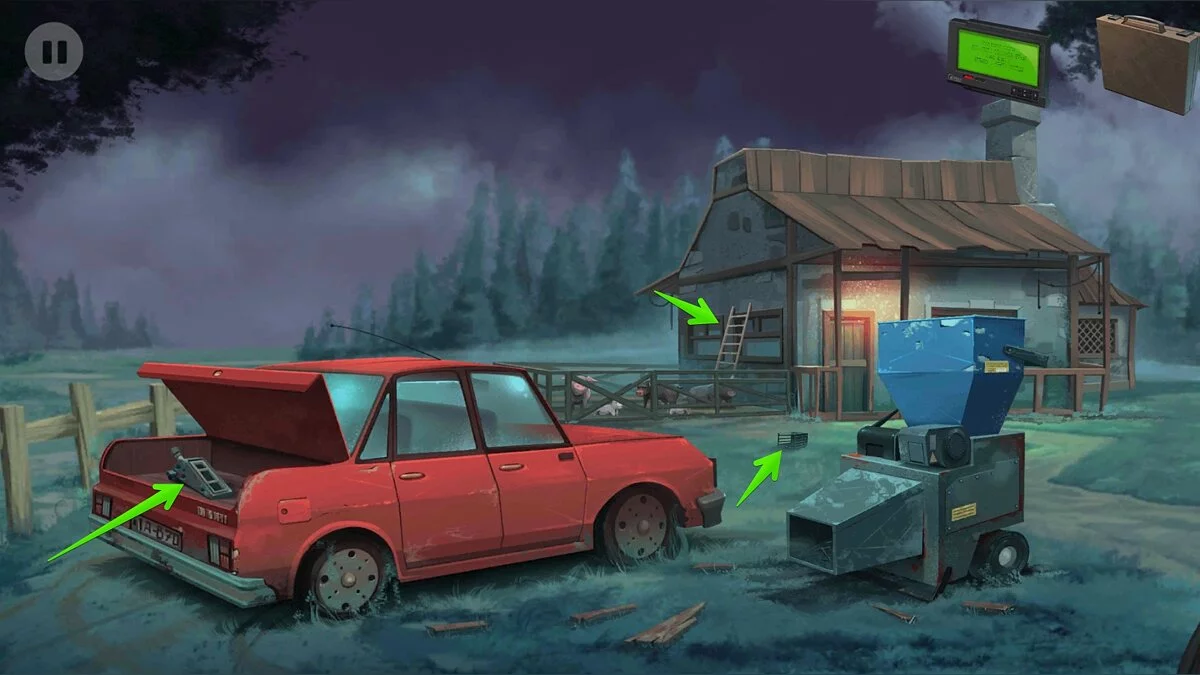 Используем кошелёк, чтобы заправить автомобиль. Применяем мачете на брезенте с брёвнами и возвращаемся к охотничьему домику (можно взаимодействовать с картой). Кладём жертву в багажник, накрываем тело брезентом. На улице осматриваем пристройку и забираем кирку.