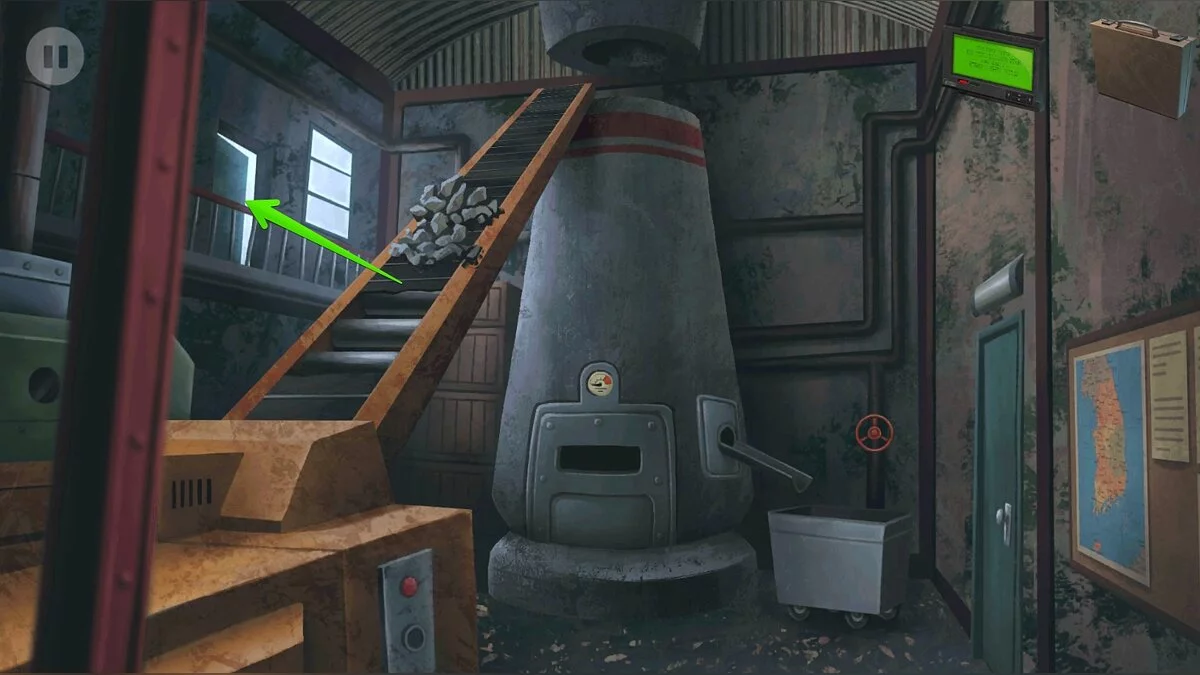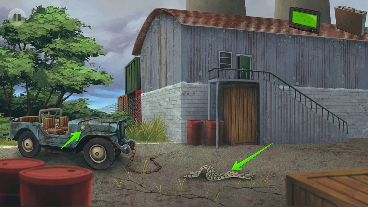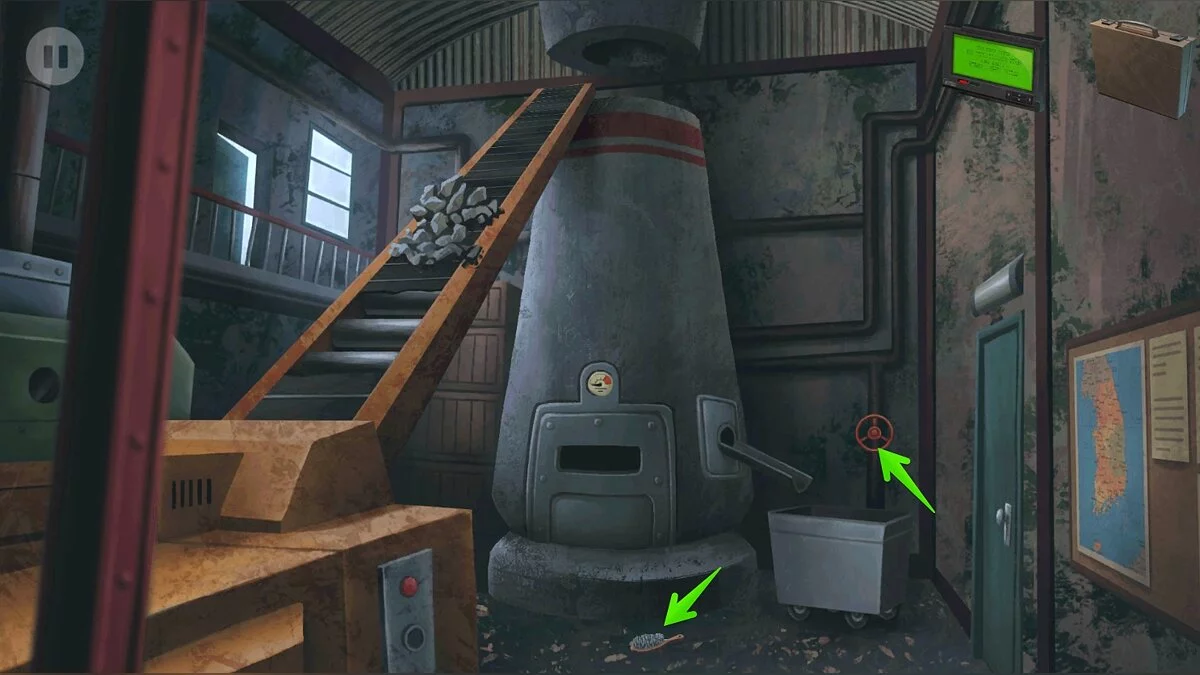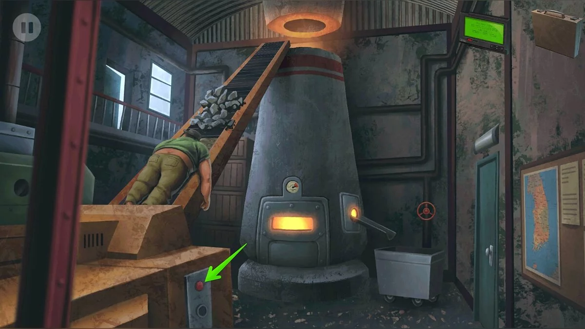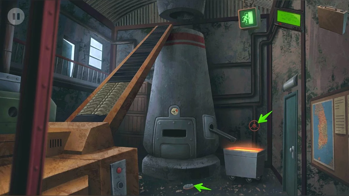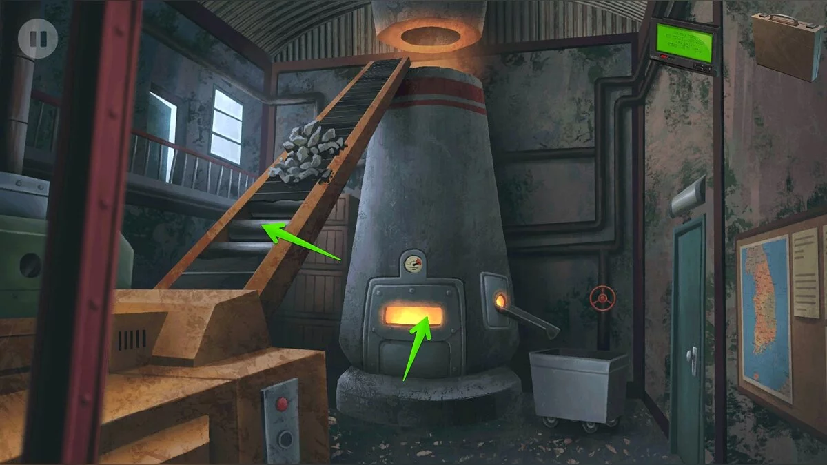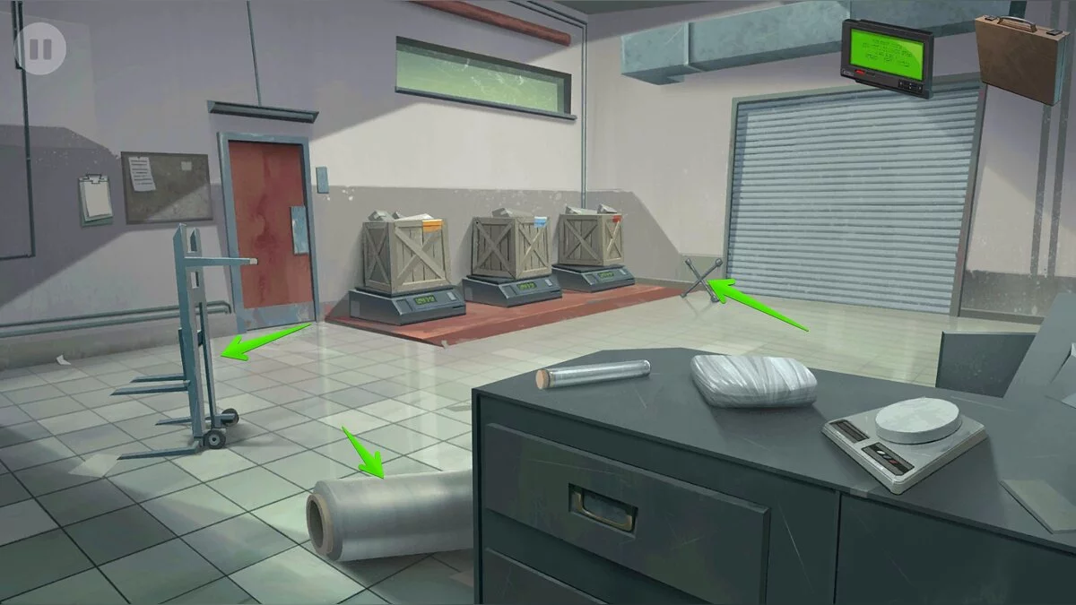 Допрашиваем работника, узнаём комбинацию для кодового замка. Он расскажет о лепреконах и назовёт цифры. Стоит отметить, что код разный для всех прохождений. Возвращаемся к мангалу и применяем пароль. В комнате на столе забираем плёнку, погрузчик и крестовой ключ. Поднимаем все ящики с весов и загружаем их в самолёты (нужно распределить по цветам).