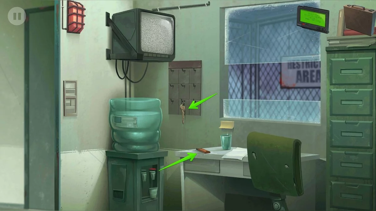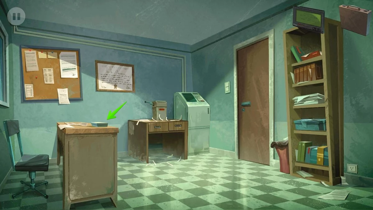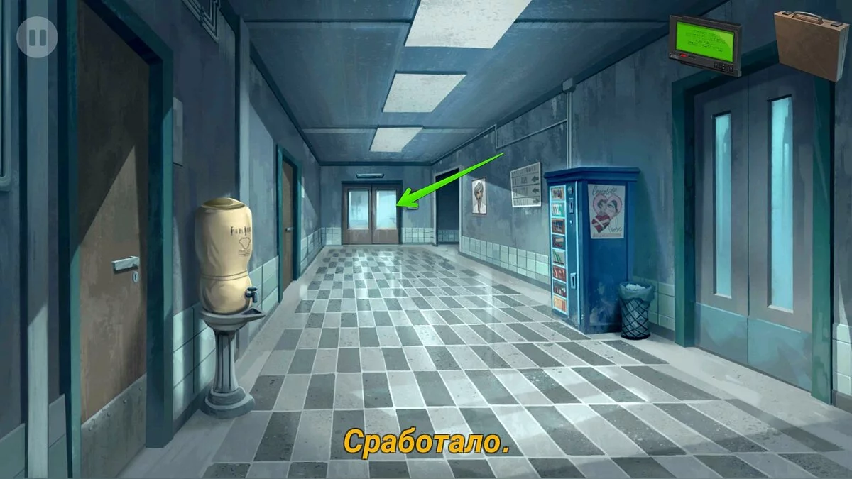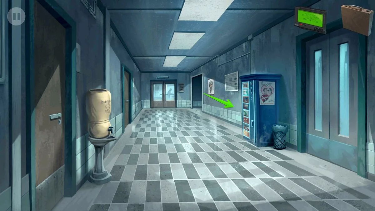 Следуйте в коридор с торговым автоматом. Поместите крышку на бак с водой. Используйте монету на автомате, заберите конфеты. Примените ключ на дверь кабинета врача. Со стола возьмите визитки, объедините их с шоколадом. Верните на место визитки и оставьте коробку на ресепшене.