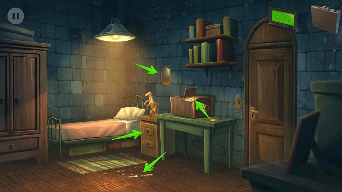 - Собираем все предметы из устройства в спальне: лампочку, самоцвет, бумагу, зеркало.