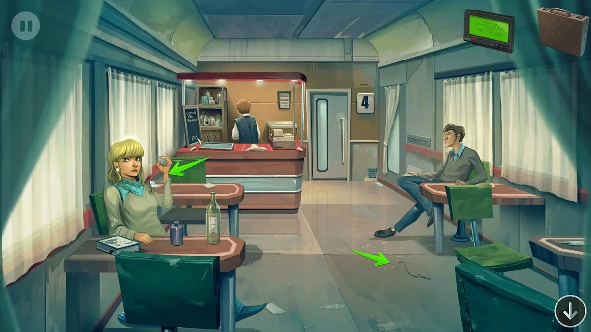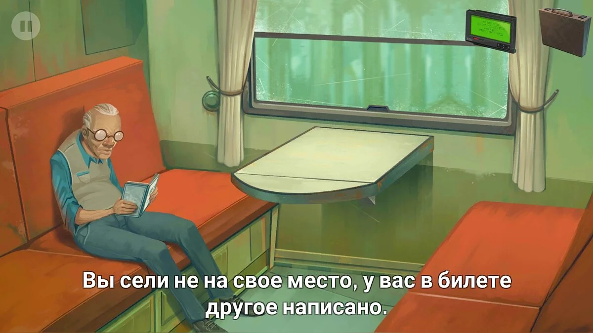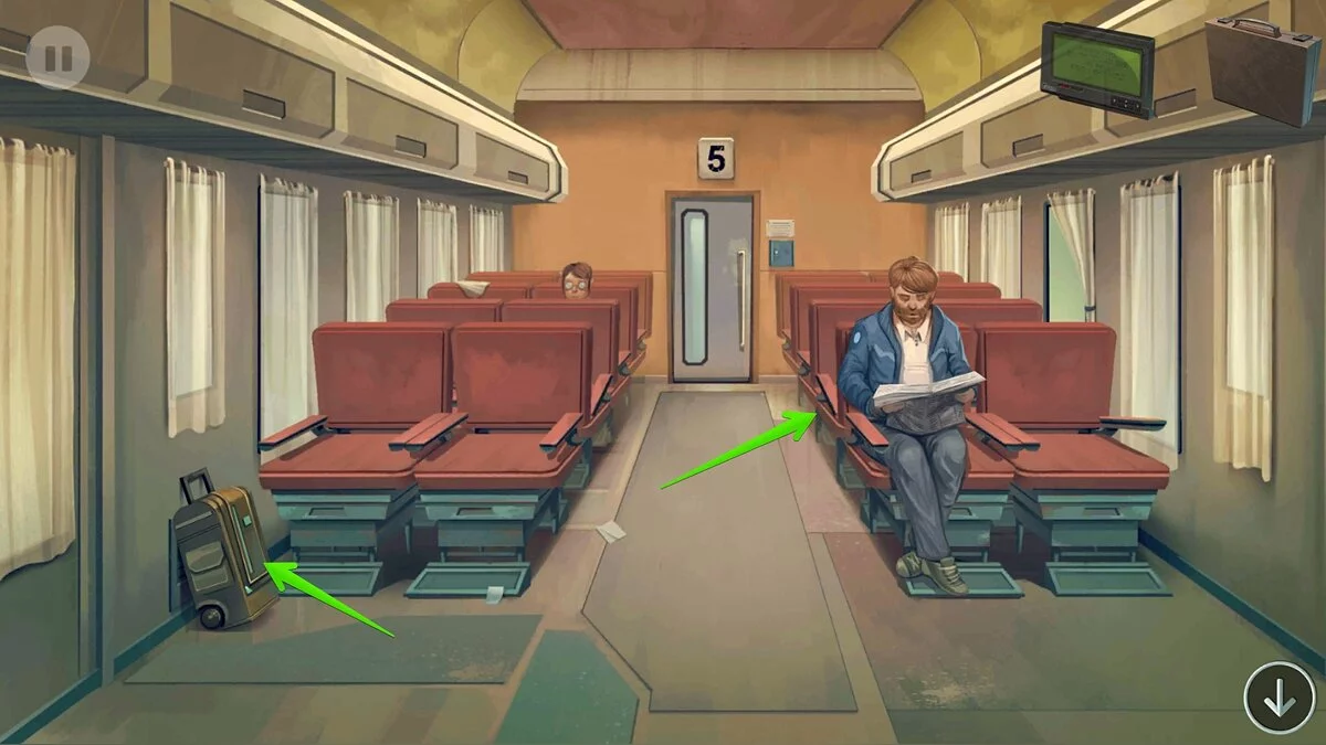 Следуйте в вагон «5». По пути попросите у бармена тряпку. Поставьте чемодан рядом с решёткой в пятом вагоне и пообщайтесь с мужчиной. Предложите вызвать проводницу. Вернитесь в офис. Заберите список, ручку, табличку и ключ в ящике.