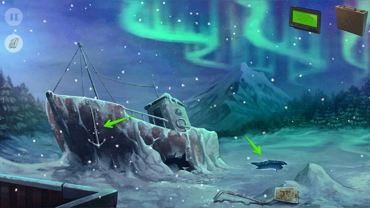 Прибыв к порту, киркой разбиваем лёд и забираем якорь. Объединяем якорь с телом, погружаем в воду. Туда же кидаем гильзы.