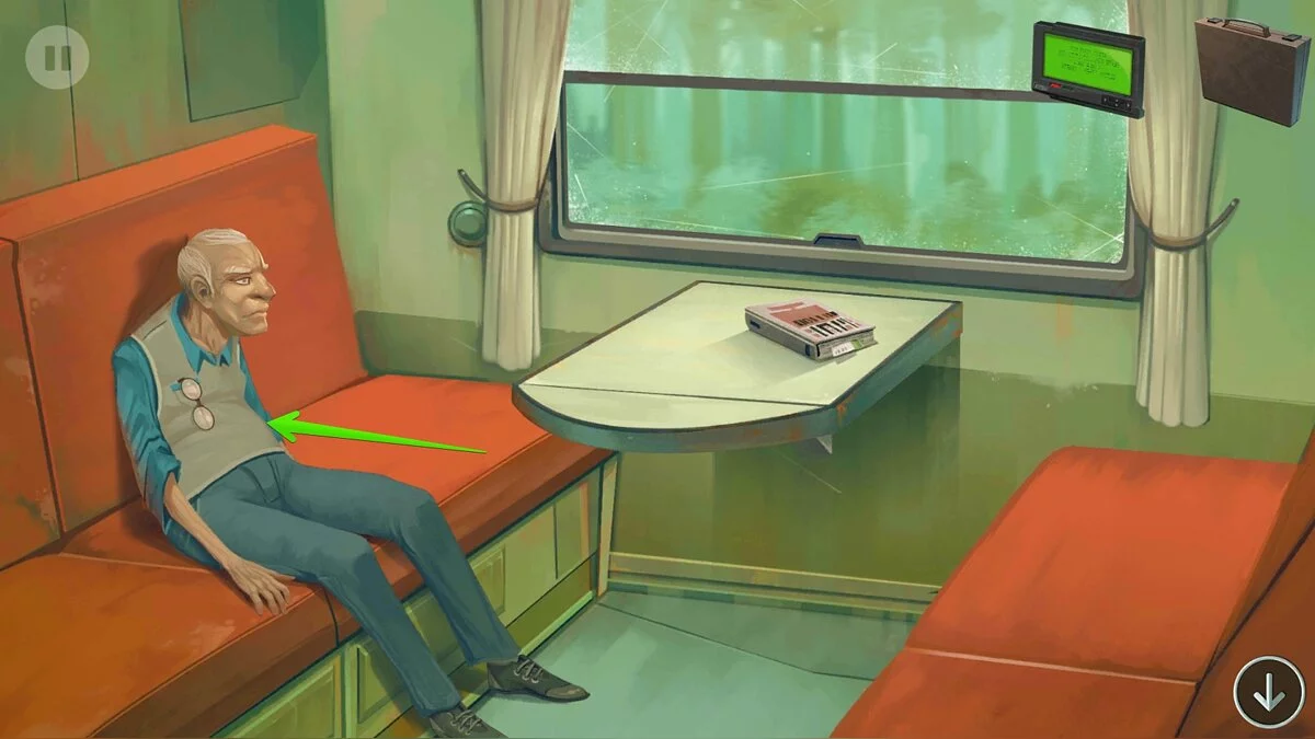 В третьем вагоне побеседуйте со стариком. Предложите ему поменяться книгами. Сделав это, ручкой измените номер вагона и места в билете (2-21). Отдайте деду билет и переместите на его место тело жертвы. Используйте отбеливатель на тряпке, избавьтесь от крови в туалете. Поверните труп и накиньте на него кепку.