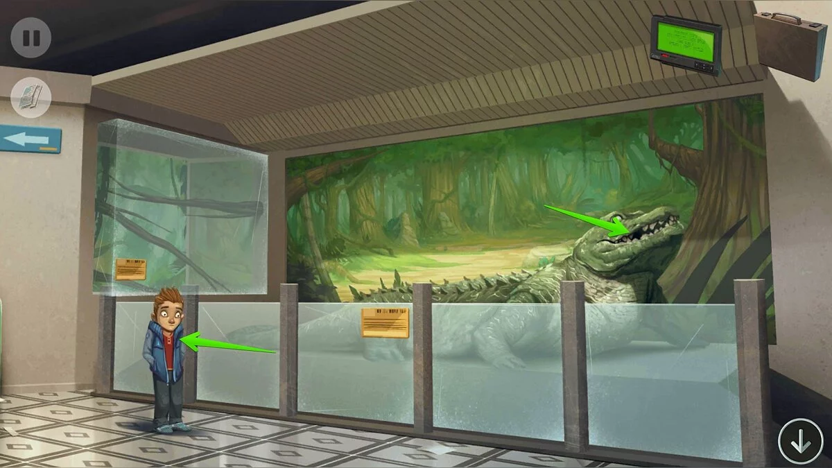 - Зуб возвращаем аллигатору в пасть, а карту — на стол перед охранником.