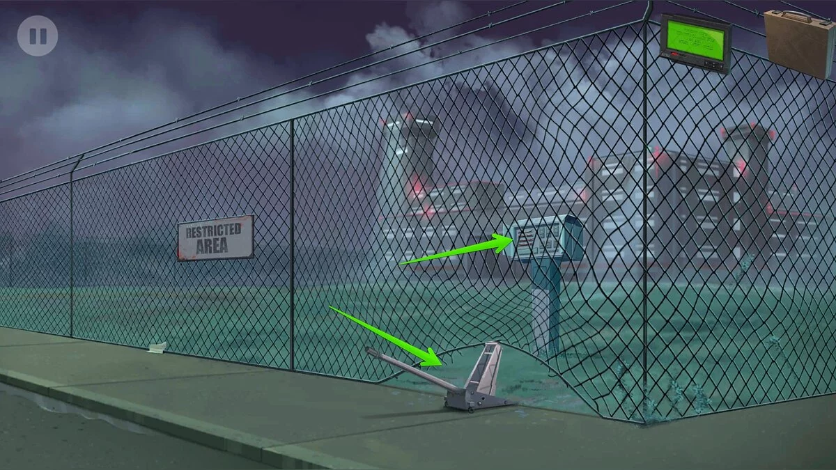 Пока охранник отвелечён, перерезаем ножом провода и замыкаем их аккумулятором. В сторожке подбираем ключ и зажигалку. Объединяем ключ и банку с грязью, чтобы получить оттиск ключа. Ключ возвращаем на место!
