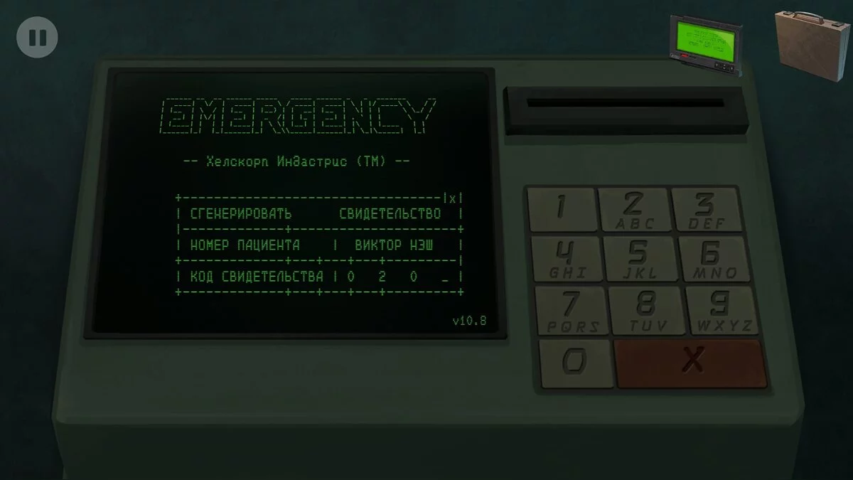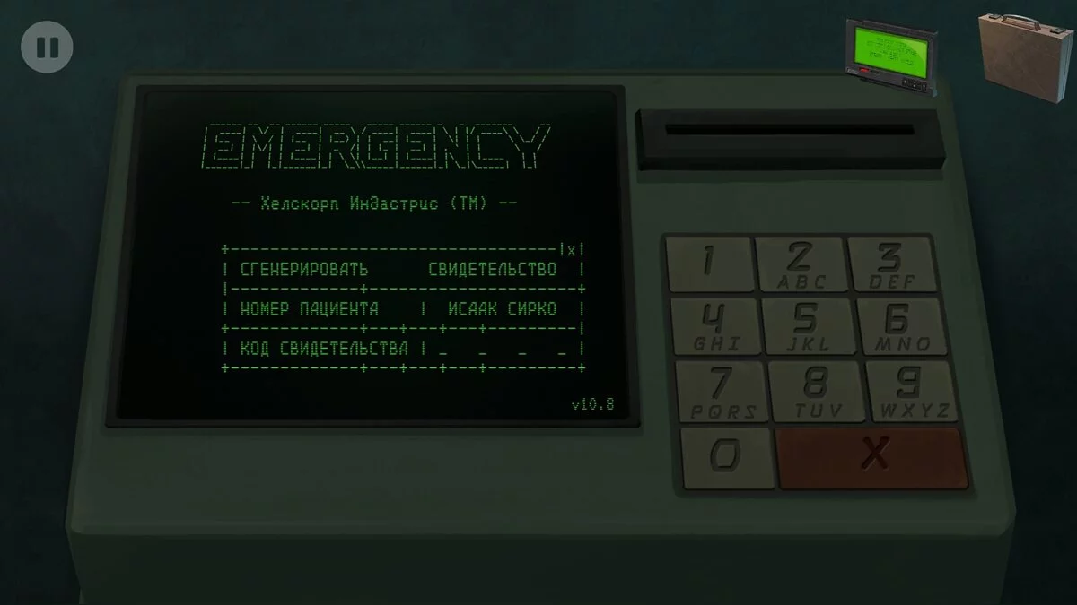 Вернитесь в кабинет врача. Выключите свет, используйте УФ-лампу на терминале. Вы увидите пароль «1578». Распечатайте два свидетельства для пациента «7475» (коды 0200 и 3323). Затем одно свидетельство для пациента «6274» (код 0200).