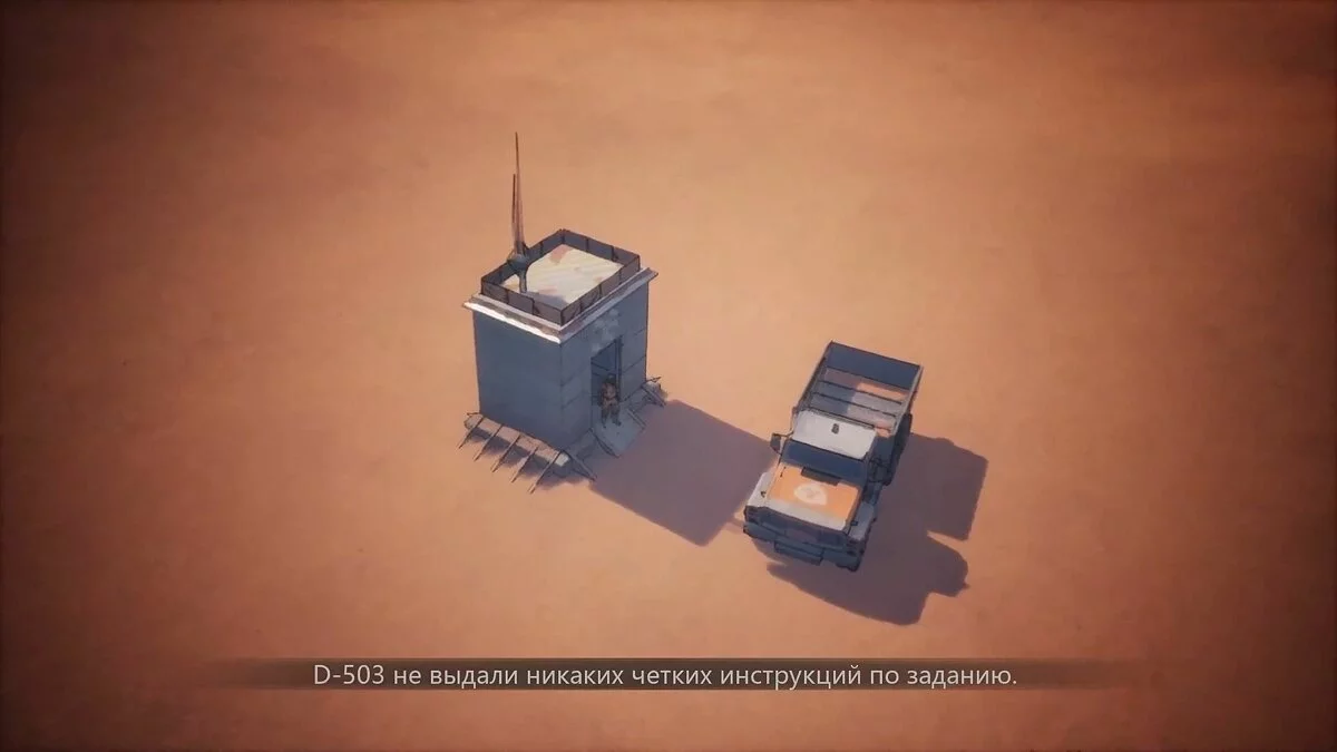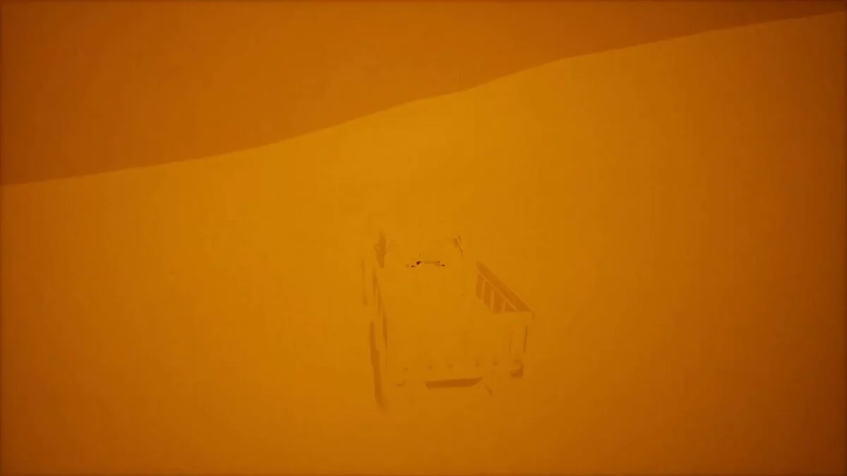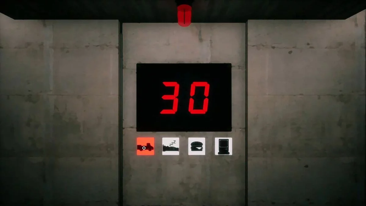 На пятнадцатый день собираем и сжигаем мусор. Наблюдаем за песчаной бурей и двигаемся вдоль чёрного кабеля к зданию с красной мигающей лампочкой. Проходим внутрь и спускаемся на лифте вниз.