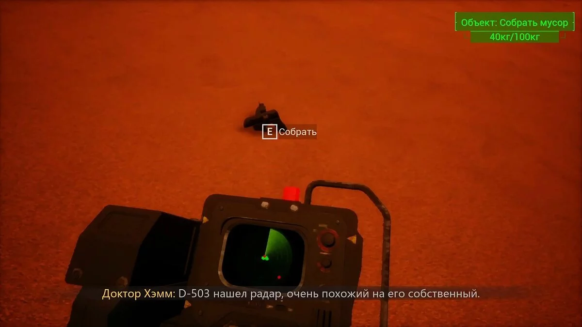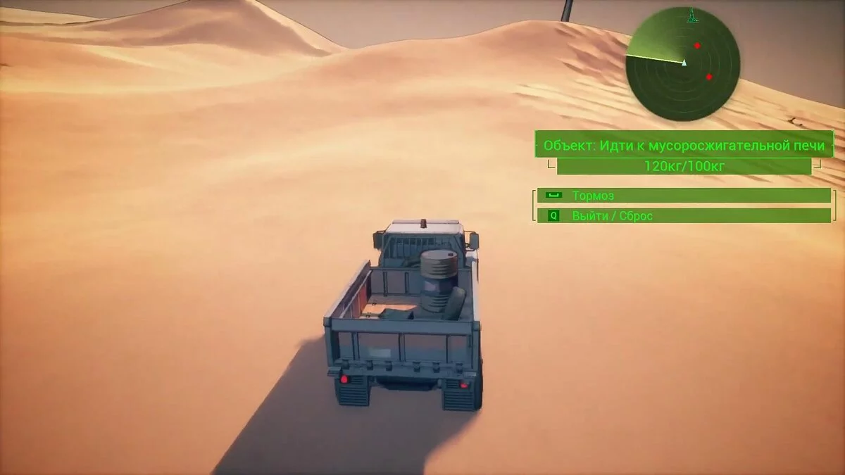 Поднимаемся на лифте наверх и садимся в грузовик. Игроку необходимо собрать минимум 100 кг мусора.