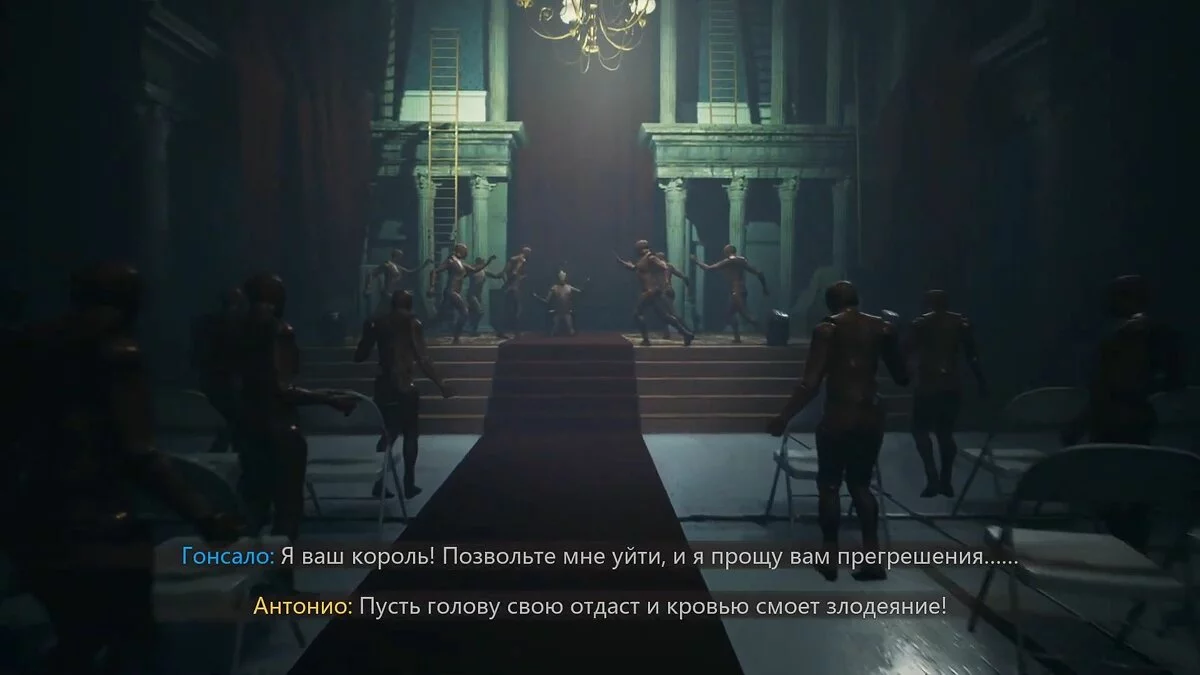 После спуска по лестнице заходим в помещение с манекенами и на развилке забираем сценарий 1-й репетиции (8/8).