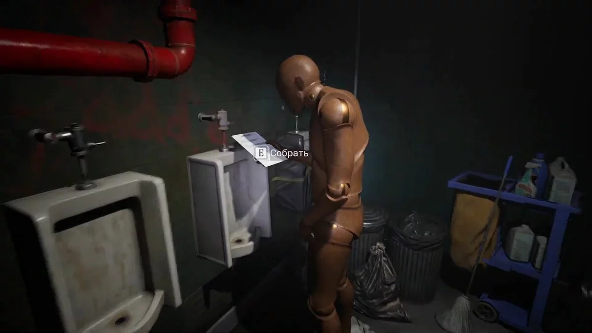 Забираем из рук манекена отрывок сценария 1 (1/8). Выходим из помещения и проходим в следующий туалет.