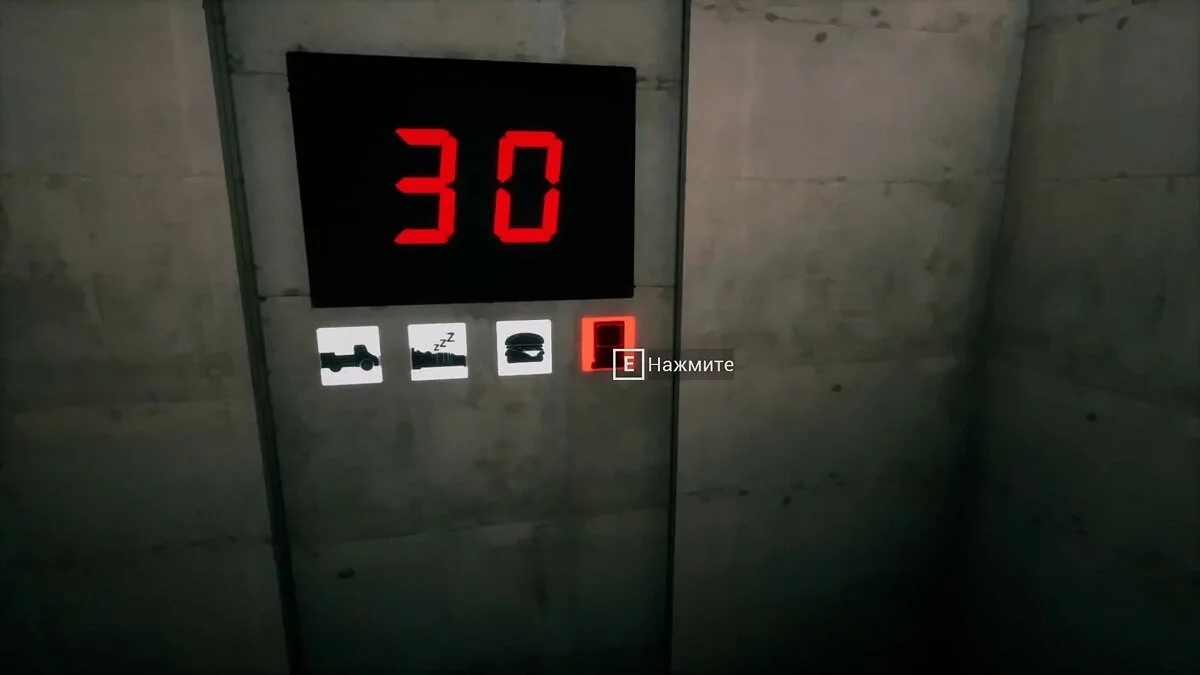 Если седьмой этаж не появился, то необходимо вернуться к синим часам и повторно воспользоваться ими. После этого внизу появится дверь с пультом. Идём на седьмой этаж, активируем кодовый замок и проходим дальше.