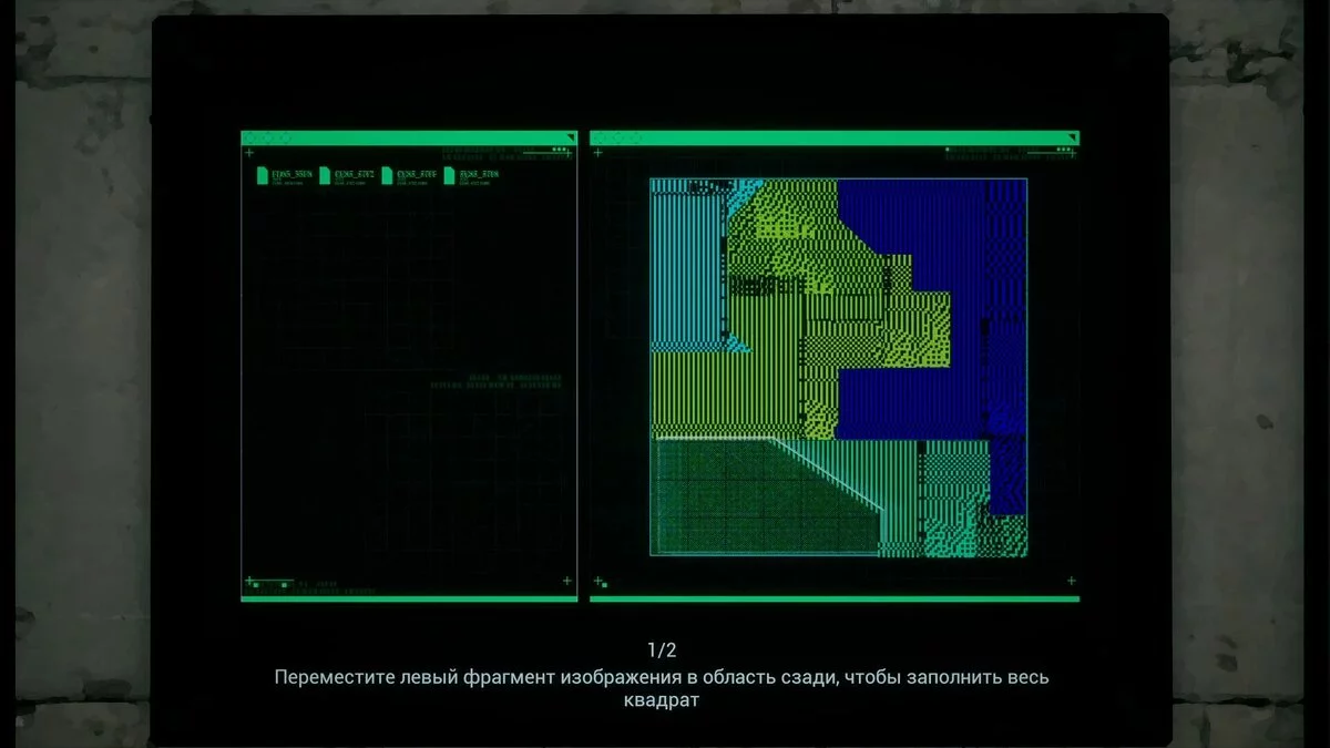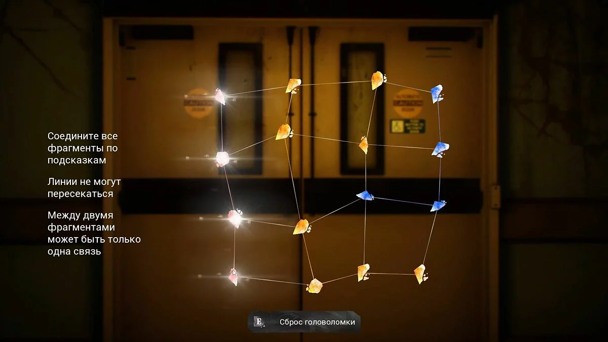 У двери восстанавливаем фрагменты и бежим по коридору. Решаем ещё одну головоломку и после видеоролика возвращаемся к компьютеру.
