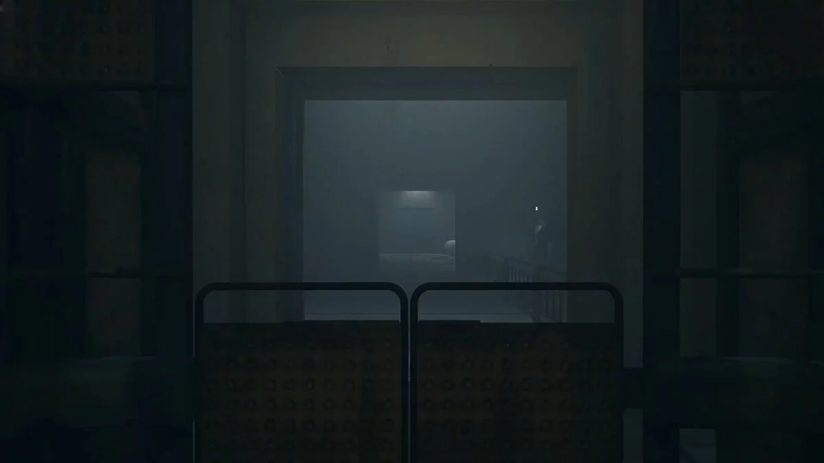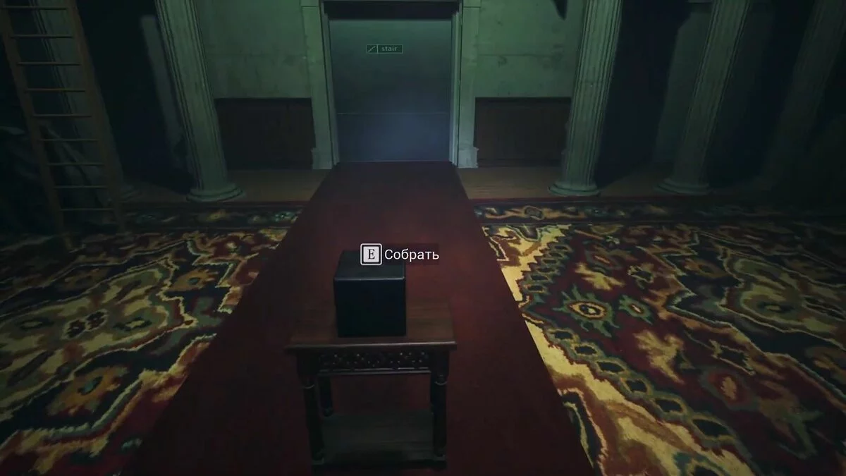 Герой снова окажется у стола со шкатулкой. Активируем игрушку и запускаем механизм. Проходим через дверь и двигаемся за силуэтами к ресепшену.