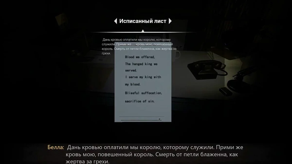 Сразу же спускаемся на один этаж ниже и подбираем с пола объявление о репетиции (документы 5/7).