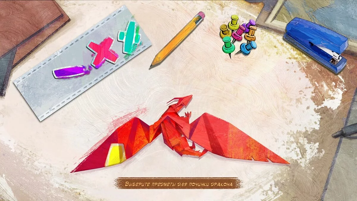 Переходим к другой сцене с помощью клавиши «D» и настраиваемся на правильную волну (кнопка «E»). Последовательно выполняем несколько действий — бегаем за скомканной бумажкой по комнате, играем на флейте, упаковываем коробку и играем с драконом. После короткой кат-сцены собираем с пола разноцветных бумажных драконов для починки. Снова играем на флейте, собираем рюкзак и пытаемся ещё раз поднять всех бумажных драконов с пола.