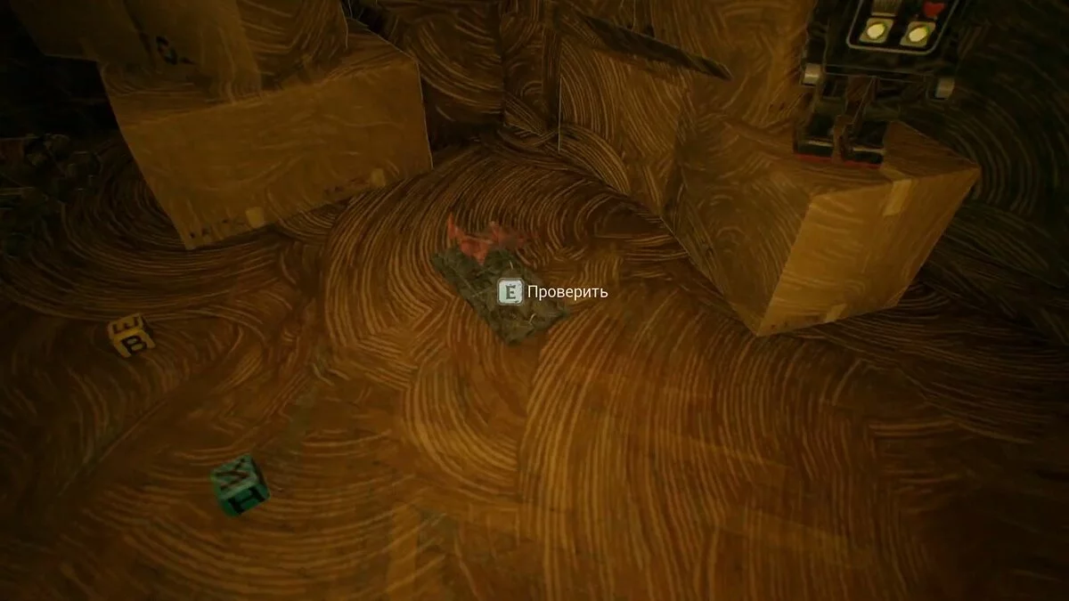 Повторяем маршрут, проходим через открывшуюся дверь и пролезаем вдоль стены. Добравшись до безопасного места, можем зайти в комнату и прослушать запись.