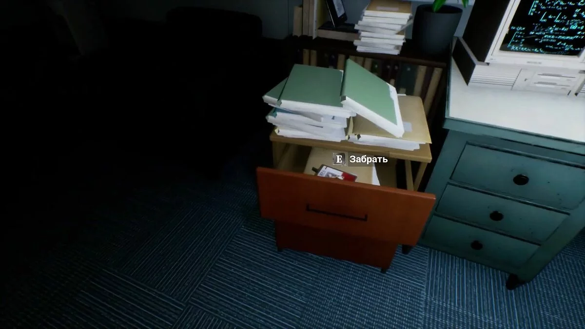После общения с неизвестным контактом выходим из кабинета. Возвращаемся к турникетам, активируем зелёную кнопку и используем лифт. Идём по коридору по прямой и проходим в помещение справа. На столе находим примечание (1/4) с кодом «0426».