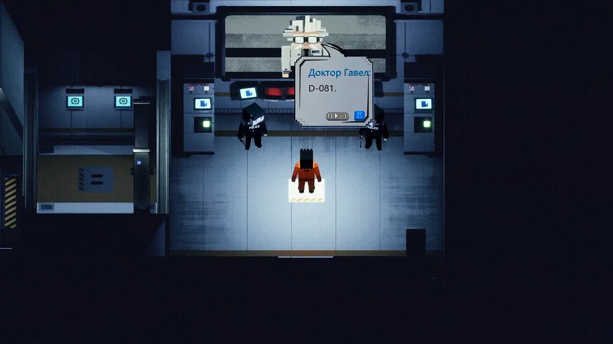 В следующем помещении встаём на ещё одну панель и общаемся с доктором.