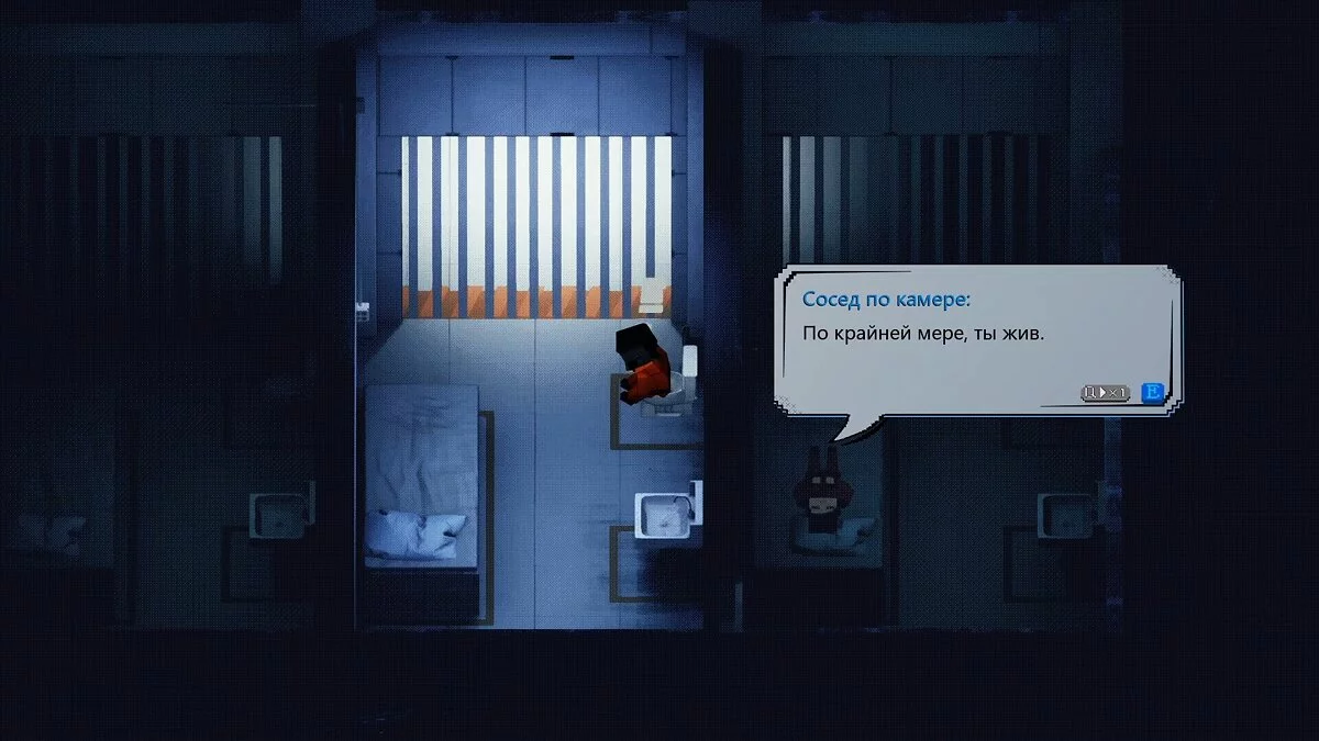 Вместе с тюремщиком идём направо, используем лифт и проходим в камеру с металлодетектором.