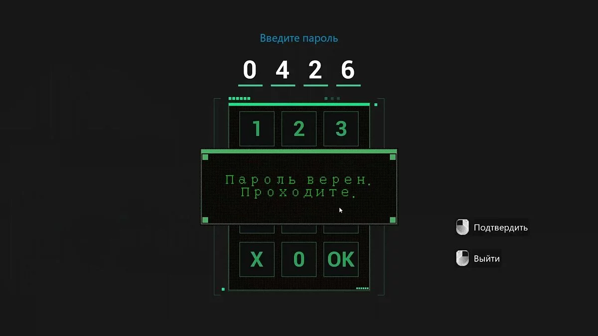 Проходим в следующее помещение, активируем консоль и вводим код «0426».