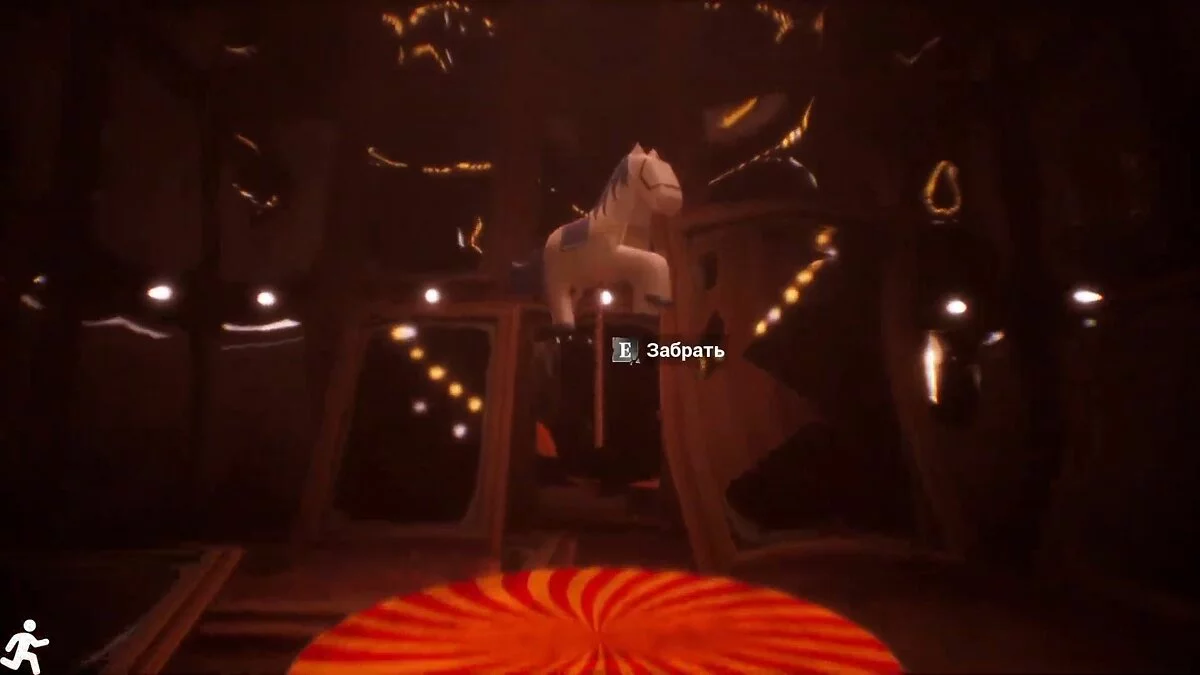 На третьем этаже после разговора учёных забираем ещё одну лошадку с пола. Вставляем в шкатулку и заводим её. Проходим через розовую дверь. Двигаемся за силуэтами.