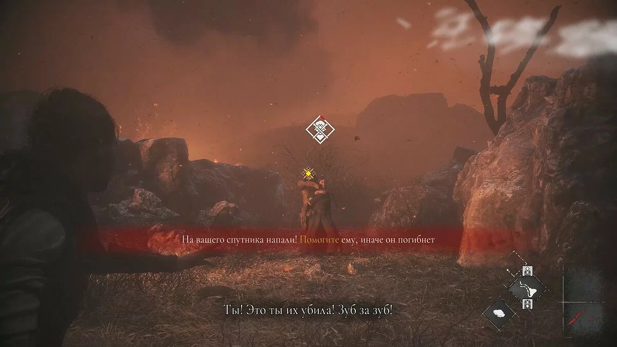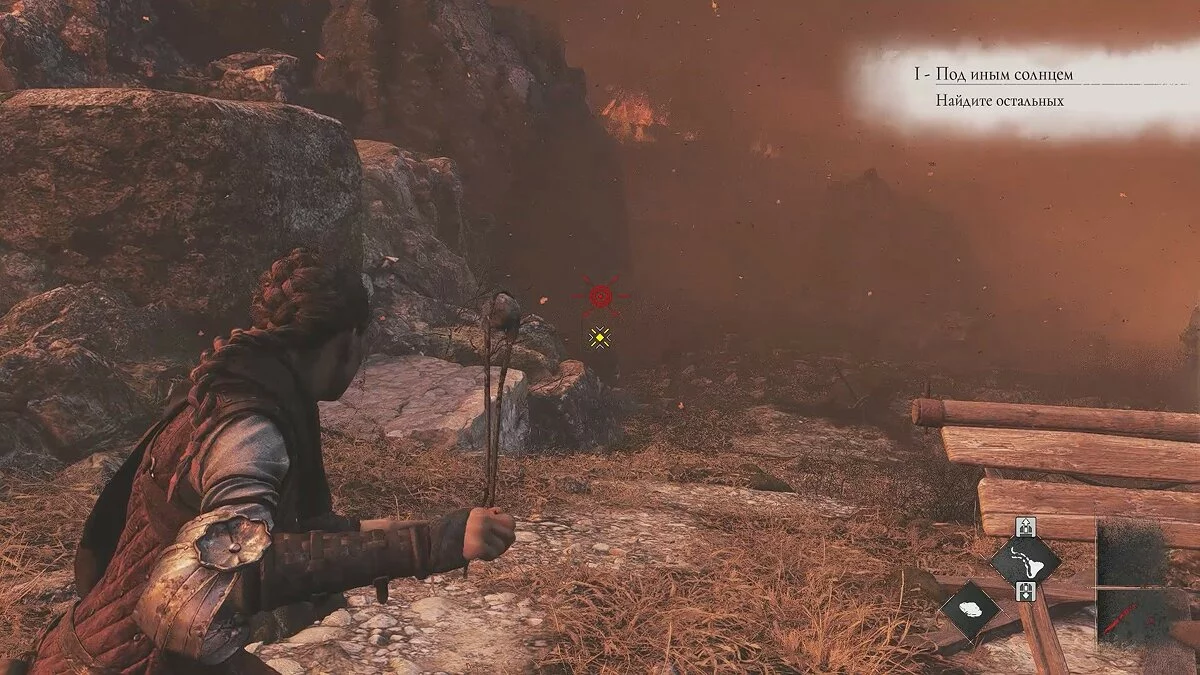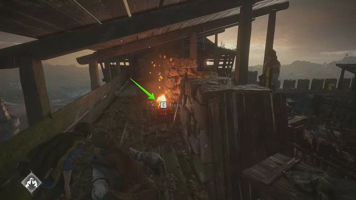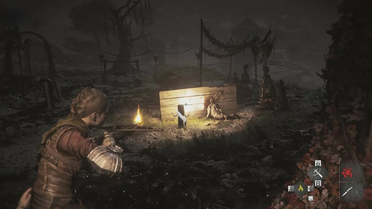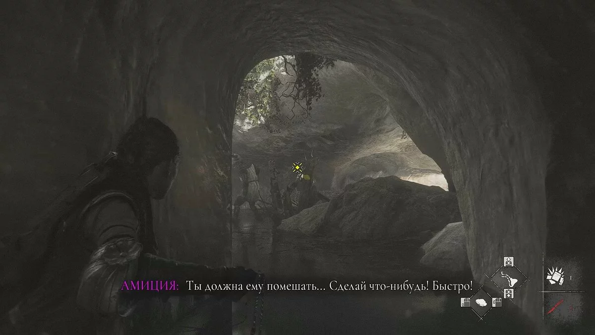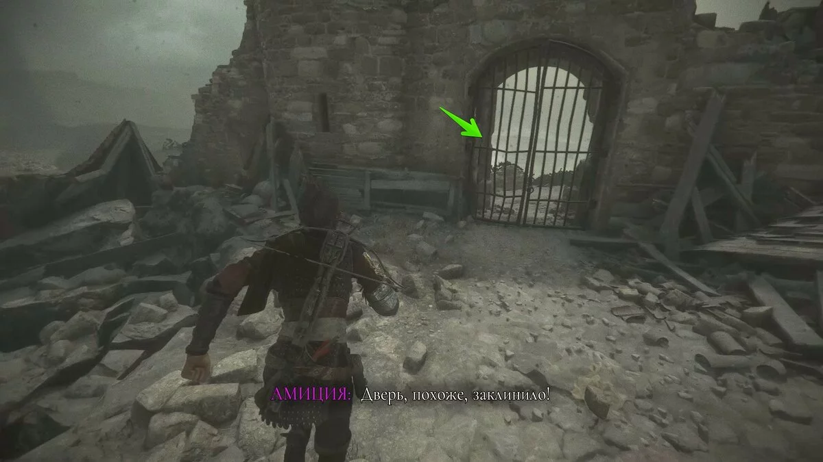 Амиция предложит спасти мужчину. Если вы хотите сохранить жизнь травнику, ознакомьтесь с этим гайдом. Чтобы пройти к выходу, возьмите палку под деревянным навесом слева. Вы также можете использовать банку с зажигательной смесью.