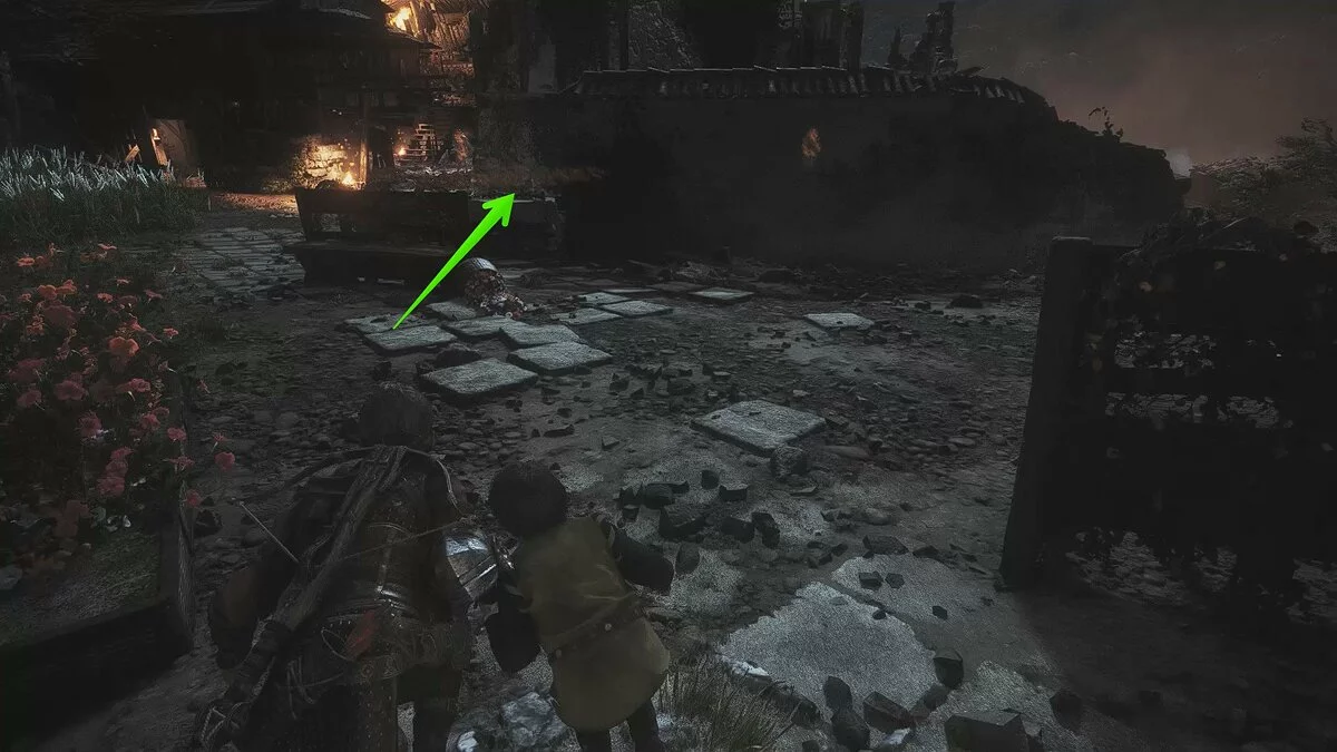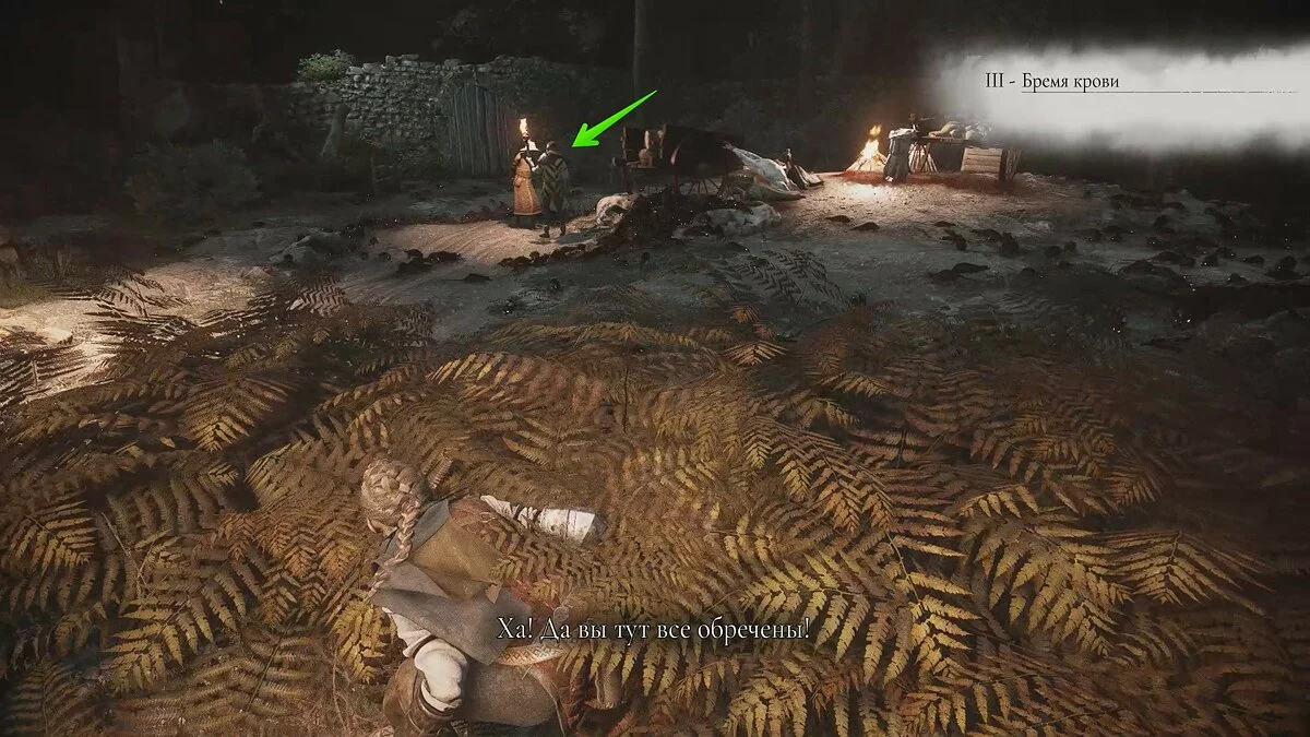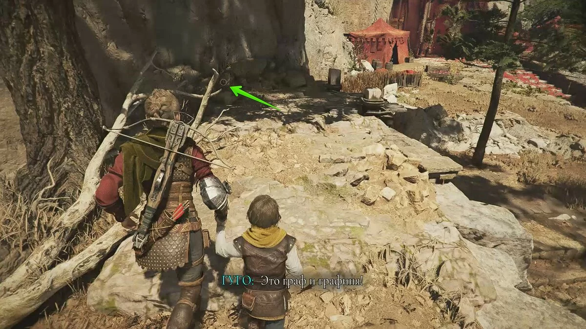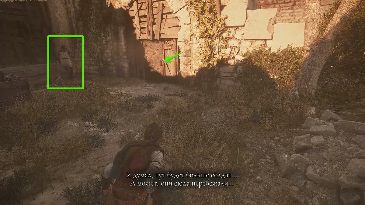 После видеоролика на движке задание обновится. Гуго попросит проследовать на центральную площадь деревни, чтобы спасти Арно. На первой локации старайтесь держаться правой стороны, а когда доберётесь до спуска, убейте всех солдат. Так вы сможете осмотреть ещё один секретный сундук, который находится посреди руин церкви.