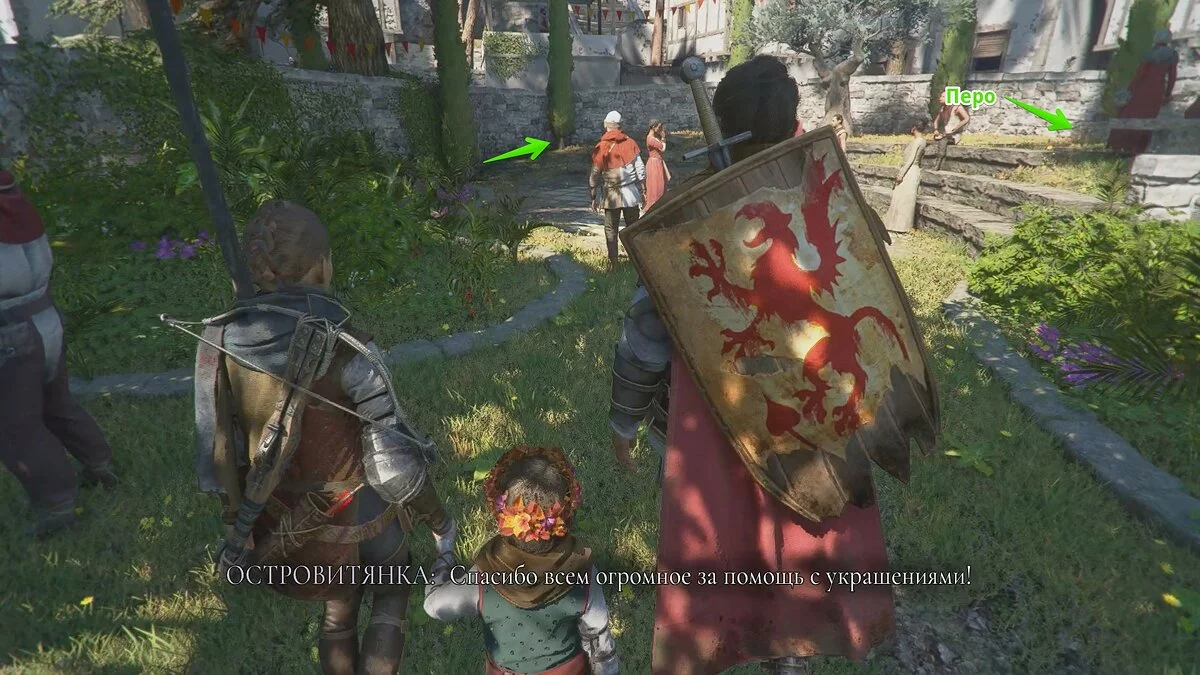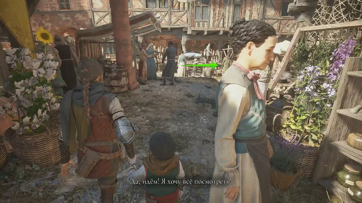 Осмотрите здание справа и обыщите все сундуки. Когда вы подойдёте близко к выходу, появится травник в сопровождении двух стражников.