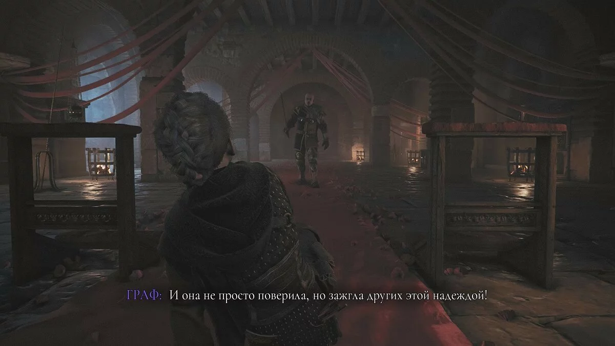 Когда Амиция встретится с графом, он попытается её убить. Отступайте назад и бегите в единственную открытую дверь. Когда граф снова появится, спрячьтесь и следуйте в левую часть комнаты. Здесь есть проход, но когда вы подойдёте близко к двери, граф выбьет её ногой. Вернитесь назад, спрячьтесь и повторите попытку.