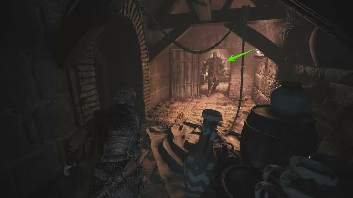 Спуститесь в подвал и покиньте дом через дверь. В следующем здании вас будет ждать враг с копьём. Убейте его и выбирайтесь.