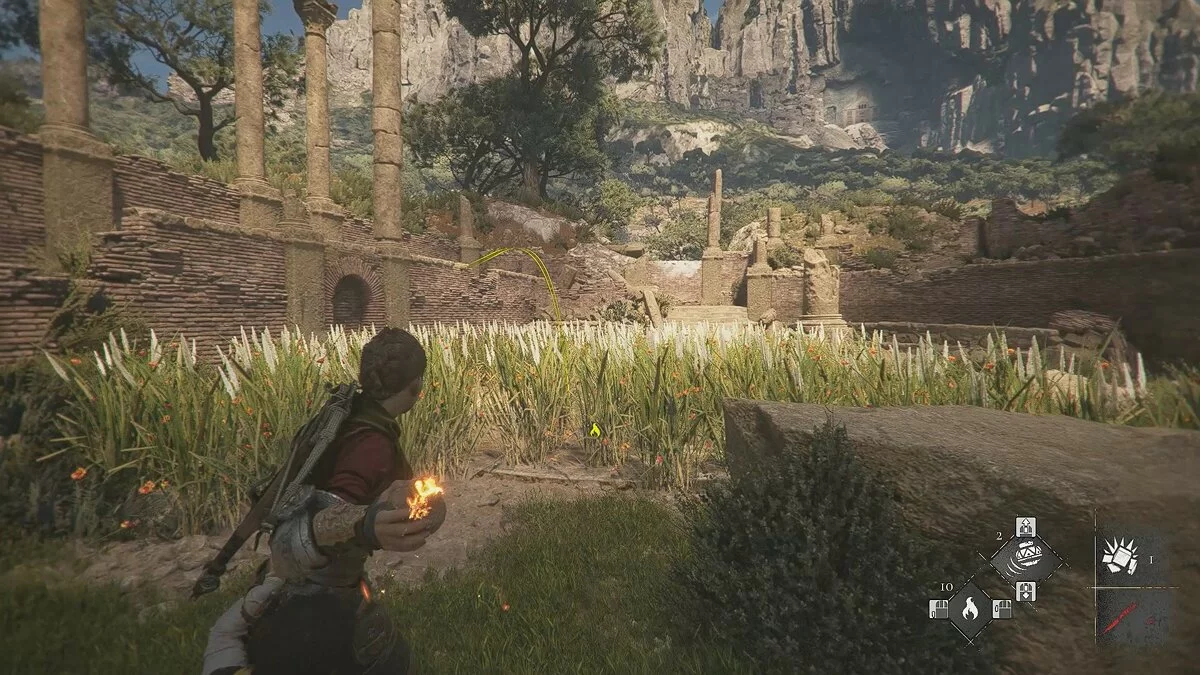 Идите по тропе, пока не наткнётесь на первую статую птицы. Перепрыгивайте через небольшой забор, сразу же за которым находится вторая статуя. Амиция решит, что нужно следовать туда, куда направлены птицы, но это не так. Развернитесь и бегите в противоположном направлении от взора статуи.