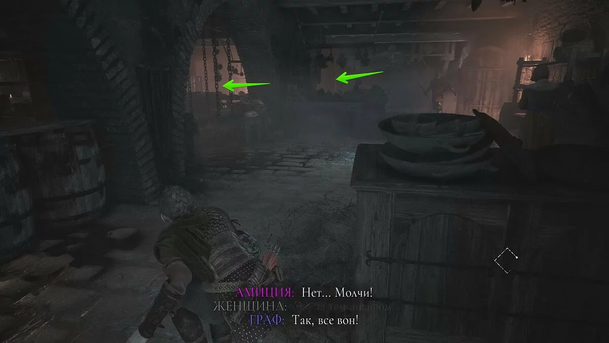 В последнем погребе с кувшинами Амиции требуется открыть решётку. Проблемой станет граф, который вскоре прибудет к ней. Чтобы выбраться, придётся перехитрить Виктора. В помещении вы можете наблюдать две комнаты с дверьми. Нужно заманить внутрь графа и ненадолго запереть дважды. Вот действенная тактика: