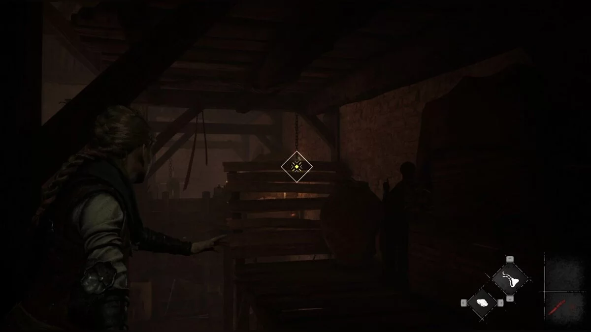 После того как вместе с Гуго одолеете большую группу крыс и впервые используете способность мальчика управлять грызунами, нужно будет пройти через дверь. За ней будет комната с несколькими дверями и стремянкой. Поднимитесь по лестнице и пройдите, пригнувшись, в комнату. Внизу будет ткань, с которой вы можете взаимодействовать, чтобы получить воспоминание.