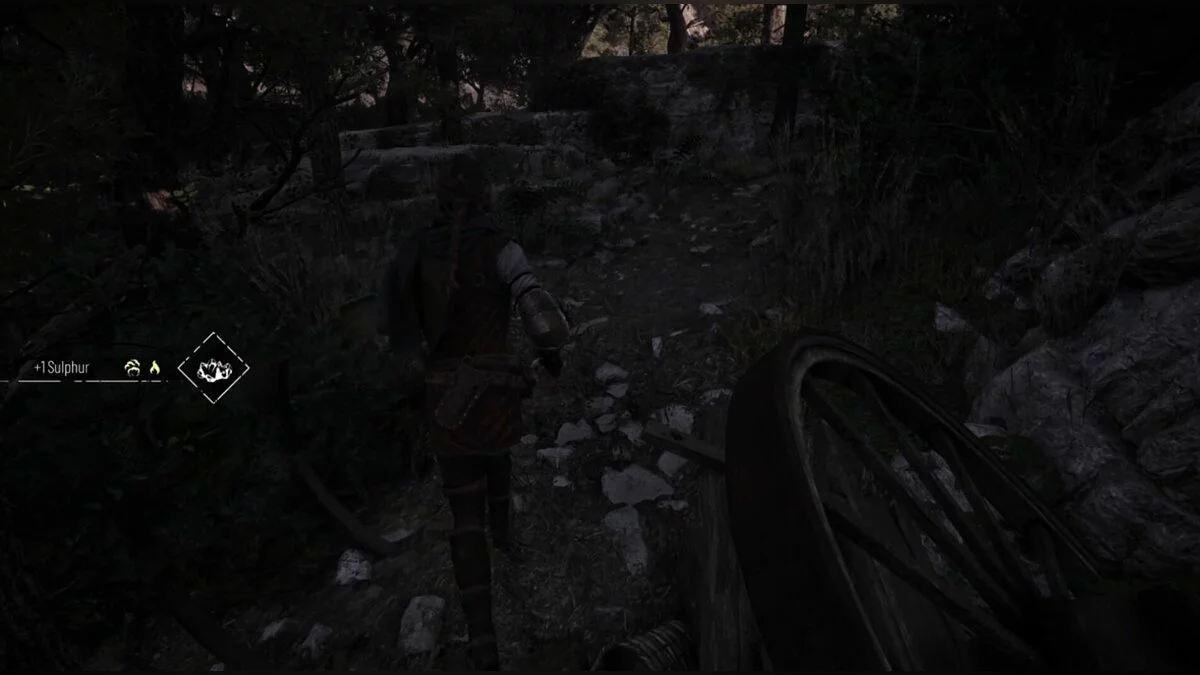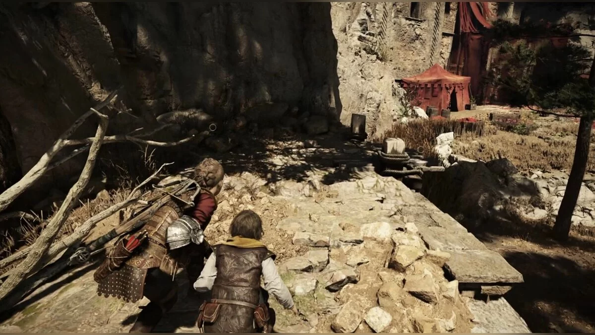 Как только вы выйдете из кишащей крысами пещеры вместе с Арно и его горящим щитом, спуститесь вниз и найдите слева верстак. Справа от этого верстака вы сможете взобраться на скалы, ведущие к воспоминанию.