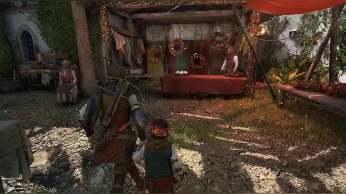 Выходите к рынку и идите направо, вглубь города. Вы попадёте в еще одну торговую зону. Держитесь левой стороны и спуститесь по лестнице. В конце двора будет палатка с венками. Победите в миниигре и получите воспоминание.