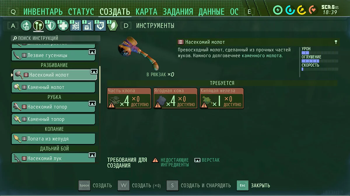 Для того, чтобы открыть новый чертёж или рецепт, нужно найти один из ингредиентов, который понадобится для создания конечного инструмента или блюда. После этого отнесите его к компьютеру и проанализируйте. В меню крафта появится инструкция для сборки или готовки предмета с перечислением всех необходимых ресурсов.
