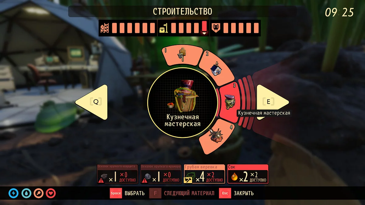 Для крафта кузнечной мастерской понадобится по одному осколку хрупкого кварцита и мрамора, четыре грубые веревки и две капли сока.